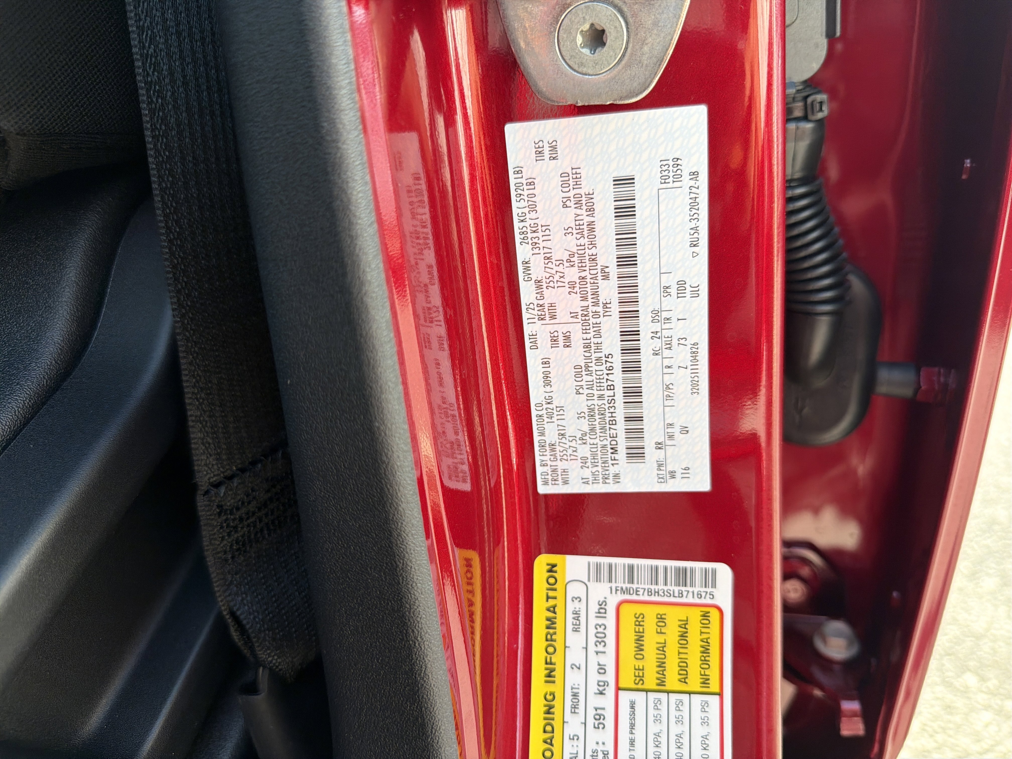 • VIN # 1FMDE7BH3SLB71675