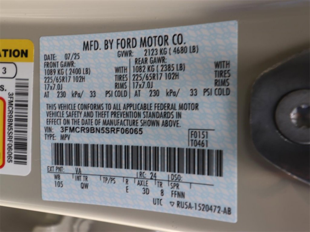 • VIN # 3FMCR9BN5SRF06065