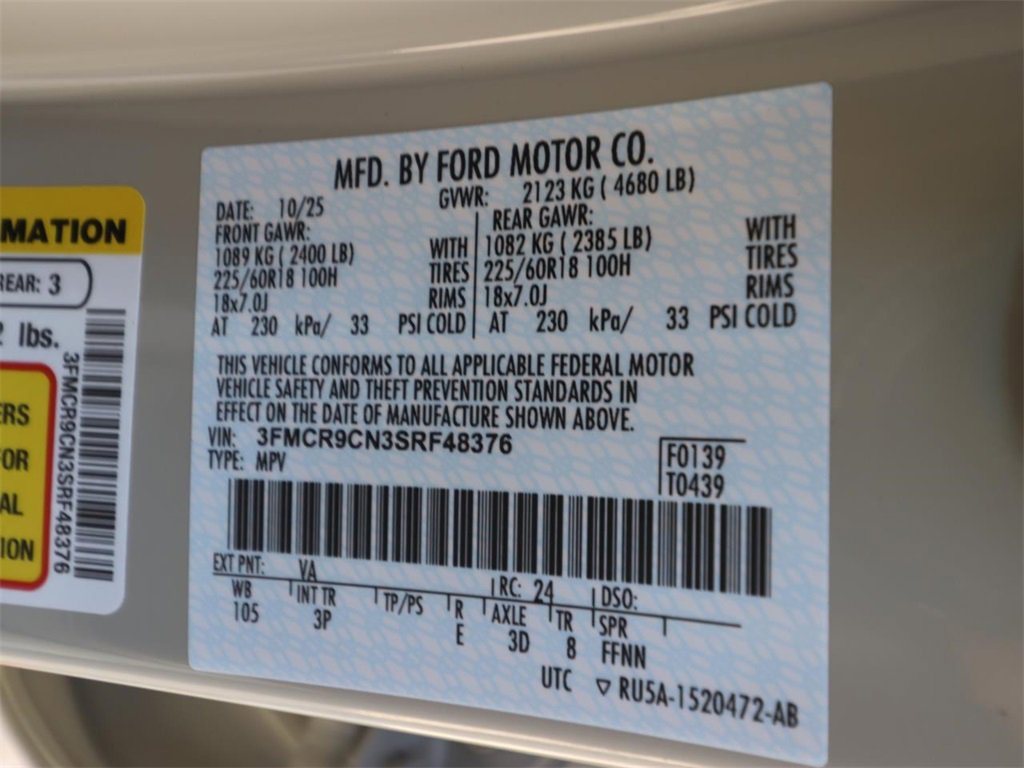 • VIN # 3FMCR9CN3SRF48376