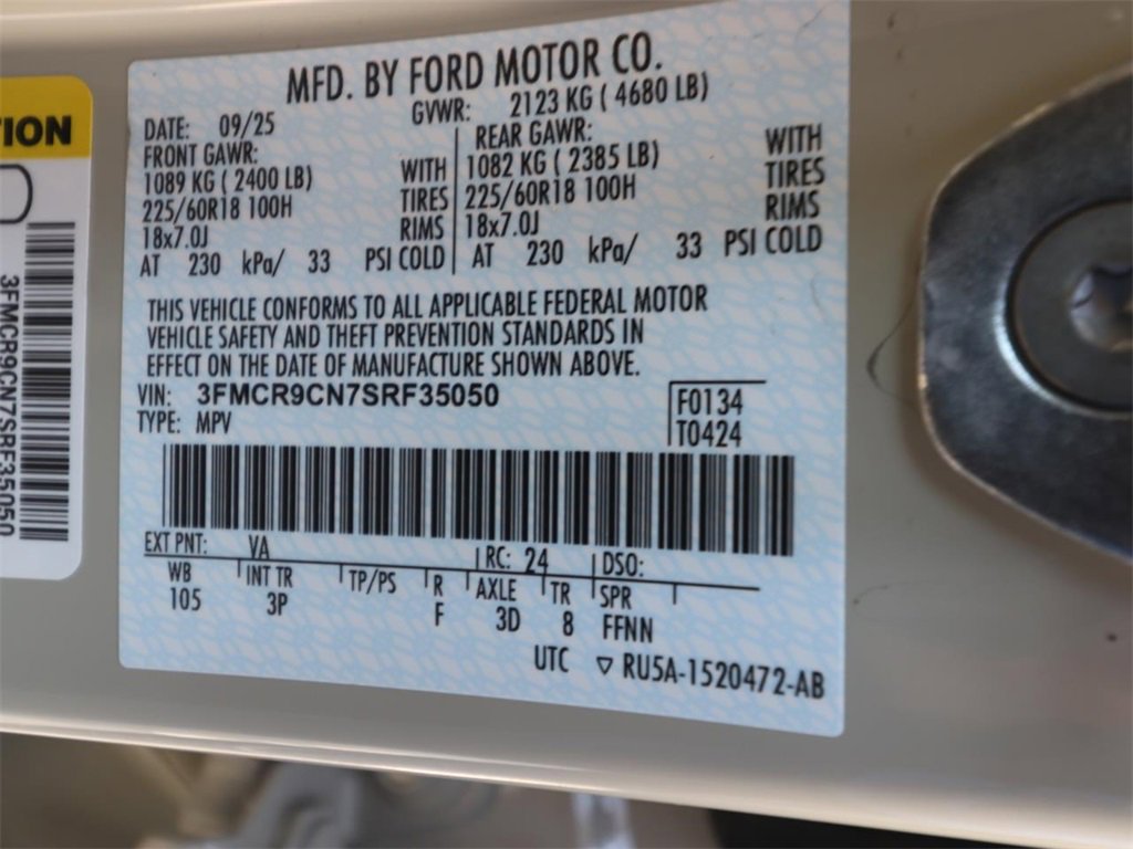 • VIN # 3FMCR9CN7SRF35050