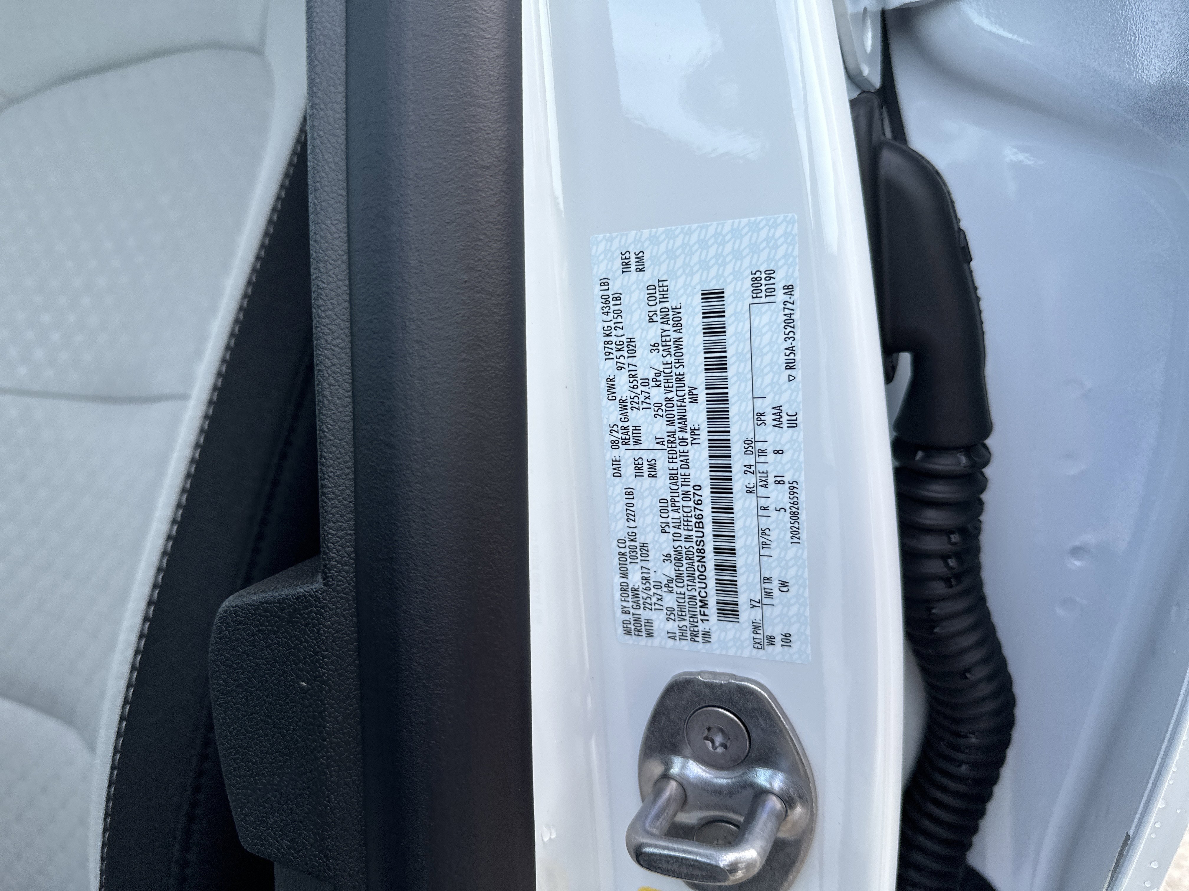 • VIN # 1FMCU0GN8SUB67670
