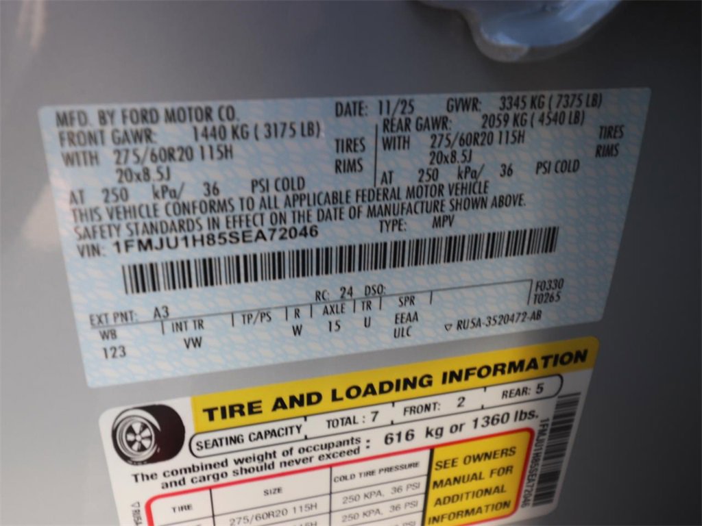 110V/400W AC Power Outlet, 2nd Row Power-Folding Captain's Chairs, 360-Degree Zone Lighting, 3rd Row Flexible Seating, 3rd Row Vinyl Seats, 4-Door Intelligent Access (Lock/Unlock), ActiveX Front Heated Captain's Chairs, BlueCruise Equipped, BlueCruise Equipped (1-Year Plan), Equipment Group 202A High Package, Flex Powered Console, Ford Split Gate, Front Side Laminated Glass, Heated Steering Wheel, Memory Driver Seat, Power Panoramic Vista Roof w/Power Sunshade, Power Tilt/Telescopic Steering Wheel w/Memory, Power-Folding Sideview Mirrors w/Autofold, Rain Sensing Wipers, SecuriCode Keyless Entry Pad, Universal Garage Door Opener, USB Ports, Wheels: 20" Carbonized Gray Bright Machined Aluminum, Wireless Charging Pad.