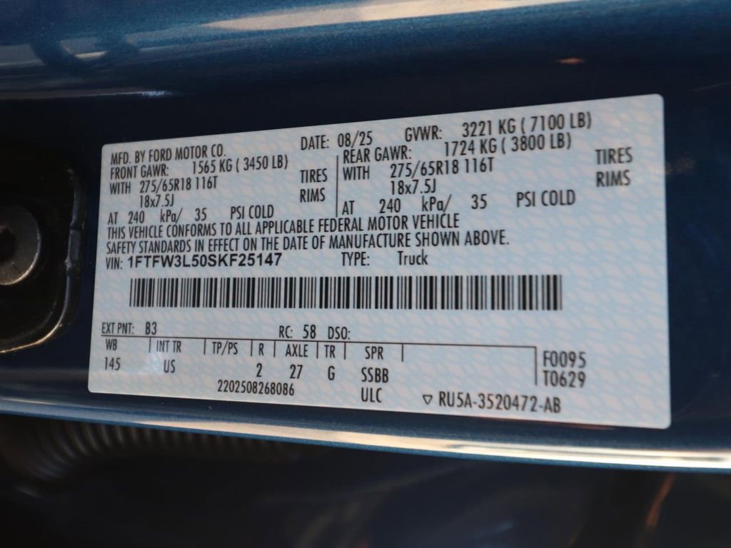 4WD, 360 Degree Camera, 4 Pickup Box Tie-Down Plates, 400W Cab & Bed Outlets, 6" Angular Bright Anodized Step Bar, Adaptive Cruise Control w/Stop & Go, Auto-Dimming Rear-View Mirror, Bed Utility Package, Black Painted Grille w/Chrome Center Bar, Chrome Door & Tailgate Handles, Chrome Single-Tip Exhaust, Cloth 40/Console/40 Front Seats, Connected Navigation, Driver State Detection, Dual-Zone Electronic Automatic Temperature Control, Equipment Group 302A Mid, Evasive Steering Assist, Ford Co-Pilot360 Assist 2.0, Front Parking Sensors, GVWR: 7,100 lbs Payload Package, Heated and Cooled front seats, Intelligent Access w/Push Button Start, LED Box Lighting, Power Glass Heated Sideview Mirrors, Power-Sliding Rear Window, Remote Start System w/Remote Tailgate Release, SecuriCode Keyless-Entry Keypad, Tailgate Step w/Tailgate Work Surface, Towing Technology, Wrapped Steering Wheel.