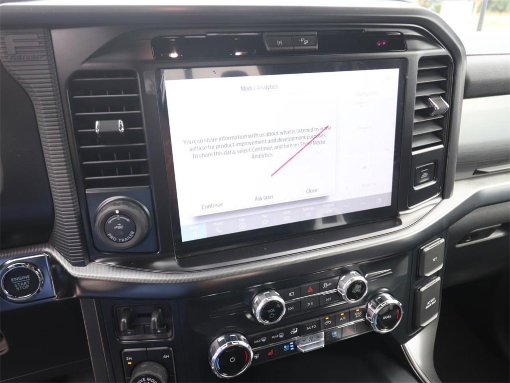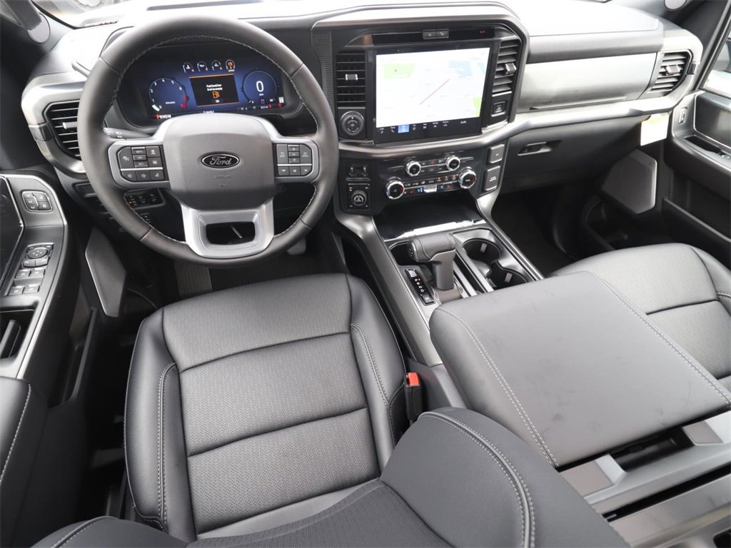 4WD, 2nd Row Heated Seats, 4 Pickup Box Tie-Down Plates, 4x4 FX4 Off-Road Bodyside Decal, ActiveX Trimmed Bucket Seats (B), Ambient Lighting - Ice Blue Color Only, Bed Utility Package, Black Exterior Badging, Black Grille, Black Taillamp Bezels, BlueCruise Equipped (1-Year Plan), Body-Color Front & Rear Bumpers, Body-Color Skull Caps & Door Handles, Console Worksurface, Dark Interior Appliques, Electronic Locking w/3.31 Axle Ratio, Equipment Group 502A High, FX4 Off-Road Package, Gray Box Side Decal, GVWR: 7,100 lbs Payload Package, Heads-Up Display, Hill Descent Control, Illuminated Driver & Passenger Visors, Integrated Trailer Brake Controller, Lariat Black Appearance Package, LED Box Lighting, Matte Black Tailgate F-150 Decal, Mobile Office Package, Monotube Rear Shocks, Off-Road Tuned Front Shock Absorbers, Partitioned Lockable Rear Storage, Power Tailgate, Power-Sliding Rear Window, Pro Access Tailgate, Radio: B&O Unleashed Sound System by Bang & Olufsen, Rock Crawl Mode, Tough Bed Spray-In Bedliner, Tow/Haul Package, Tray Style Floor Liner w/o Carpet Mats, Twin Panel Moonroof, Wheels: 20" Chrome-Like PVD, Wireless Charging.
