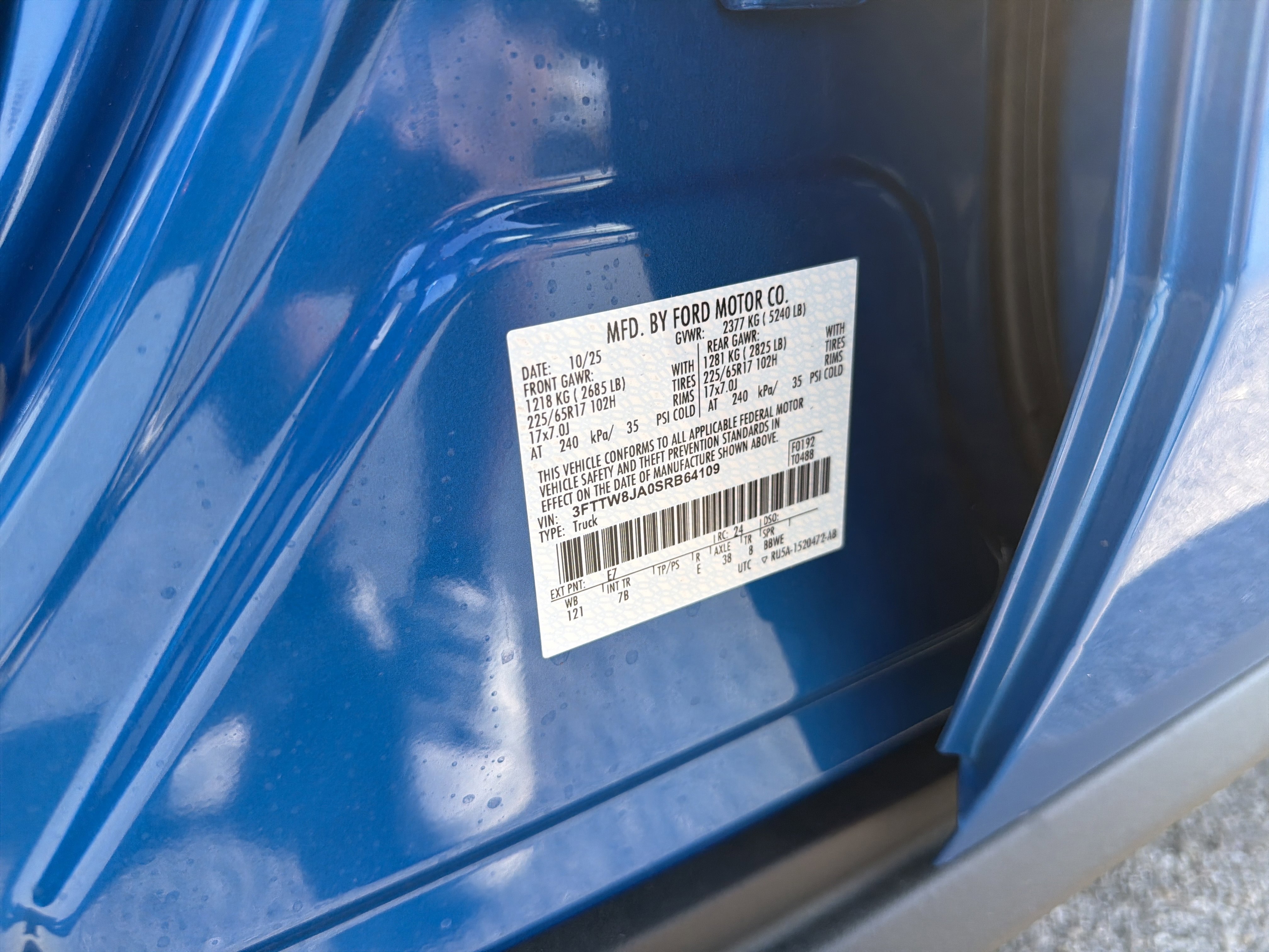• VIN # 3FTTW8JA0SRB64109