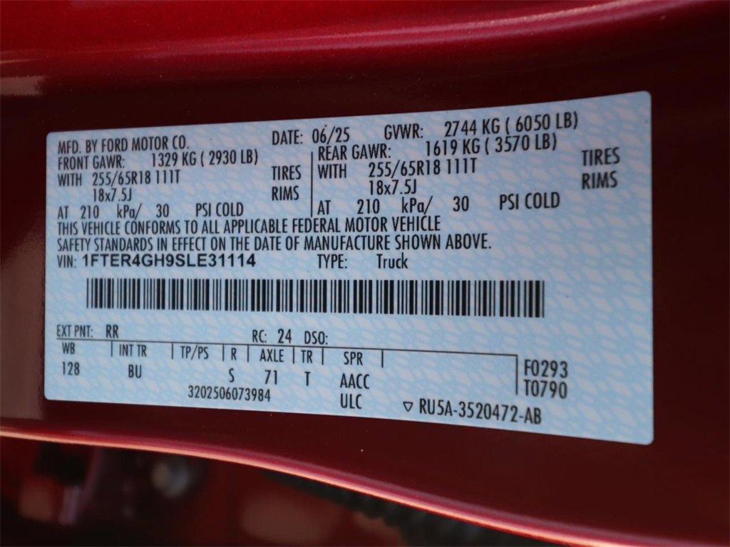 Ruby Red Metallic Tinted Clearcoat 2025 Ford Ranger XLT RWD 10-Speed Automatic EcoBoost 2.3L I4 GTDi DOHC Turbocharged VCT