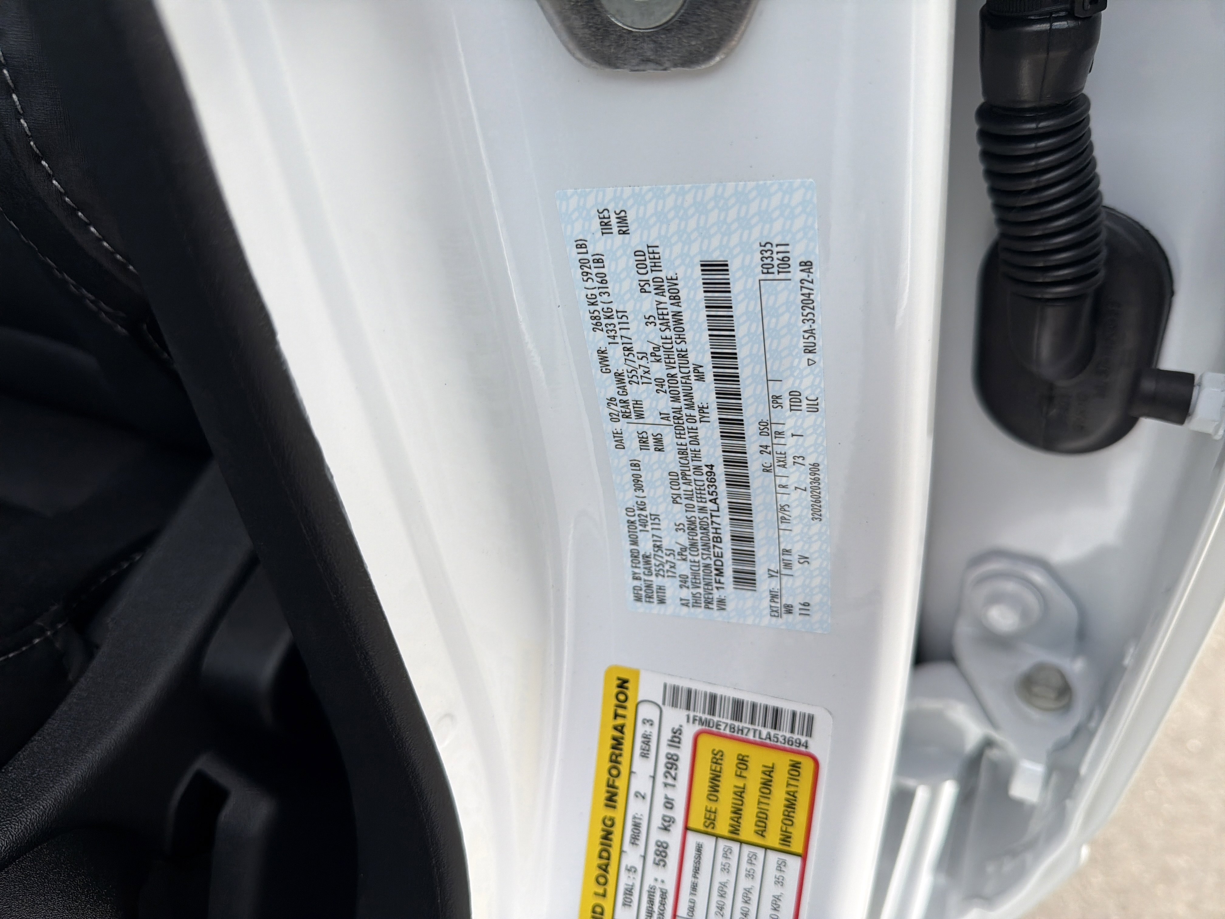 • VIN # 1FMDE7BH7TLA53694
