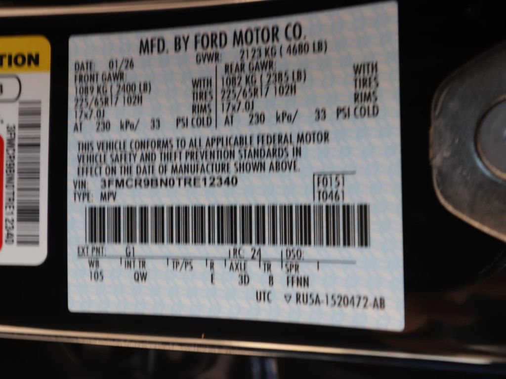 • VIN # 3FMCR9BN0TRE12340