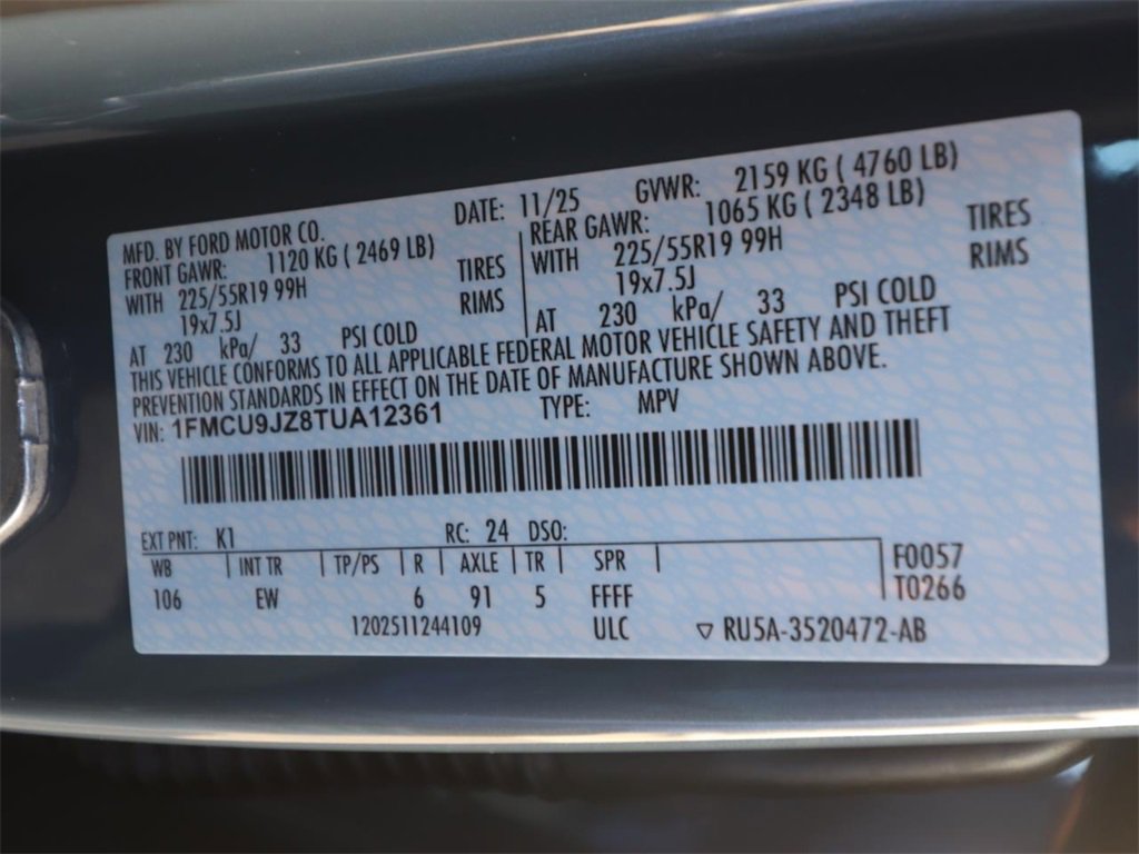 • VIN # 1FMCU9JZ8TUA12361