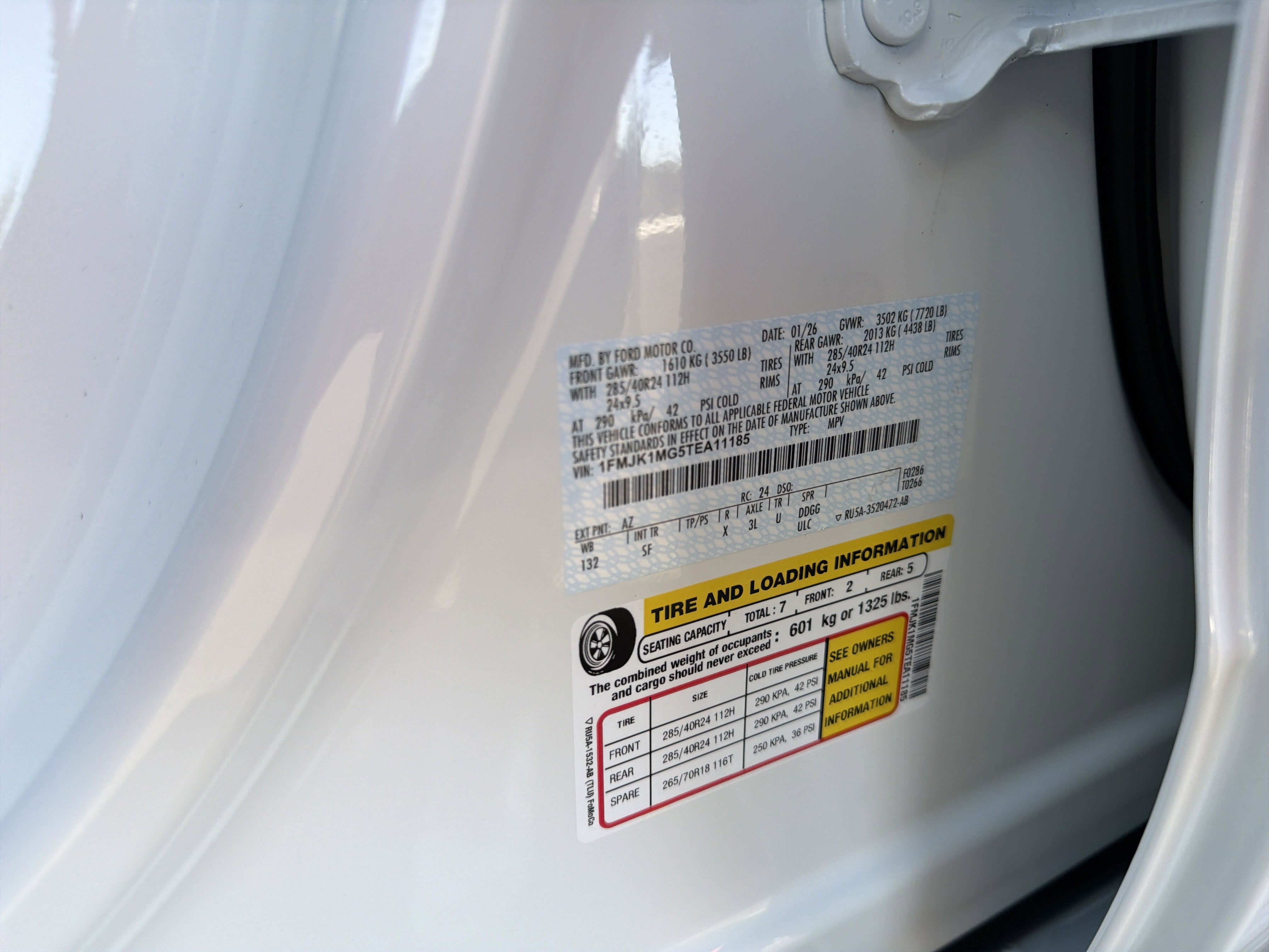 • VIN # 1FMJK1MG5TEA11185