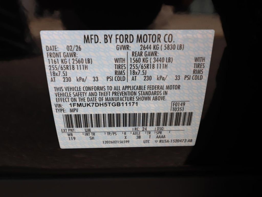 • VIN # 1FMUK7DH5TGB11171