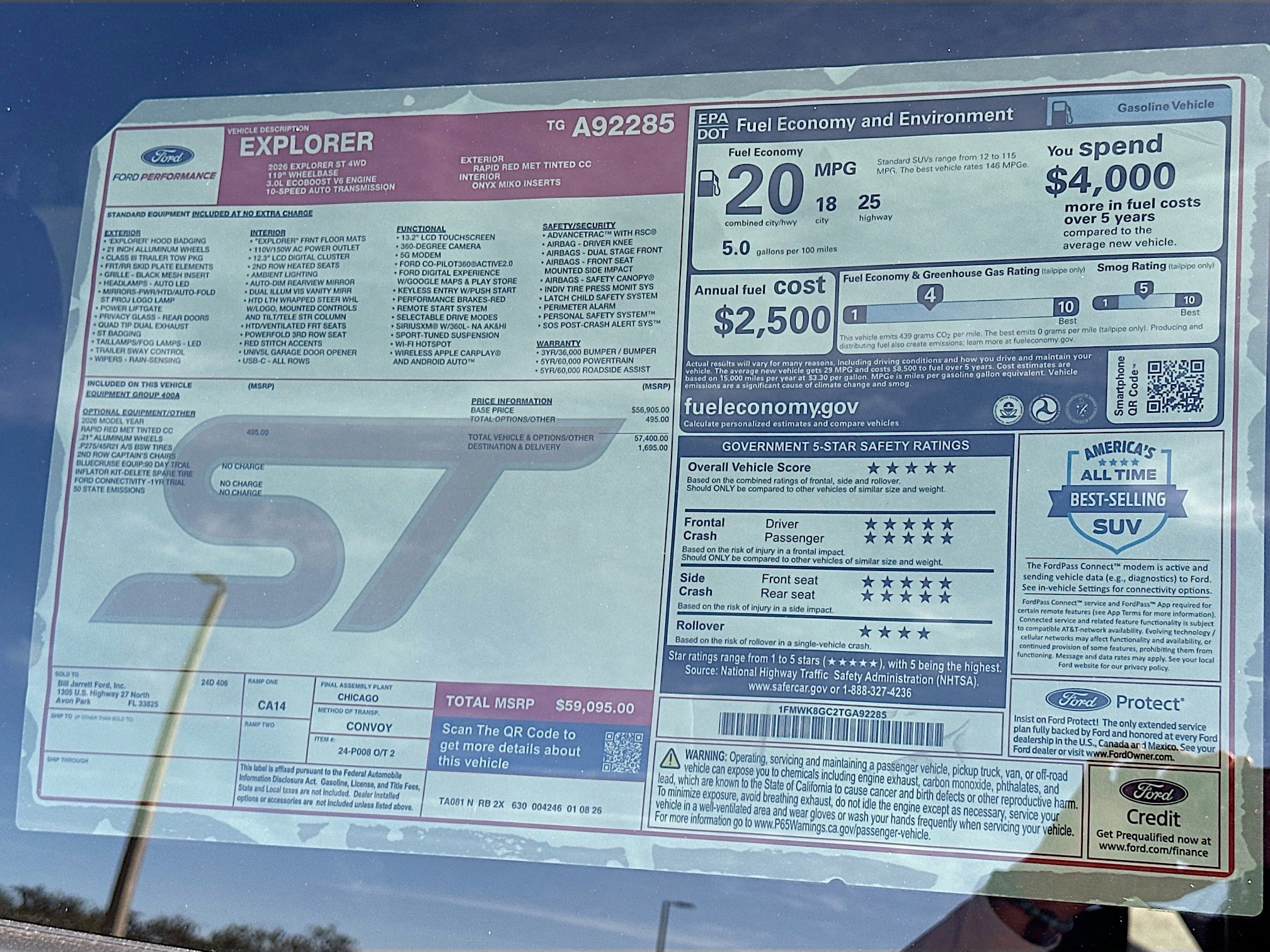 New Price! Rapid Red Metallic Tinted Clearcoat 2026 Ford Explorer ST 4WD 10-Speed Automatic 3.0L EcoBoost V6 4WD.