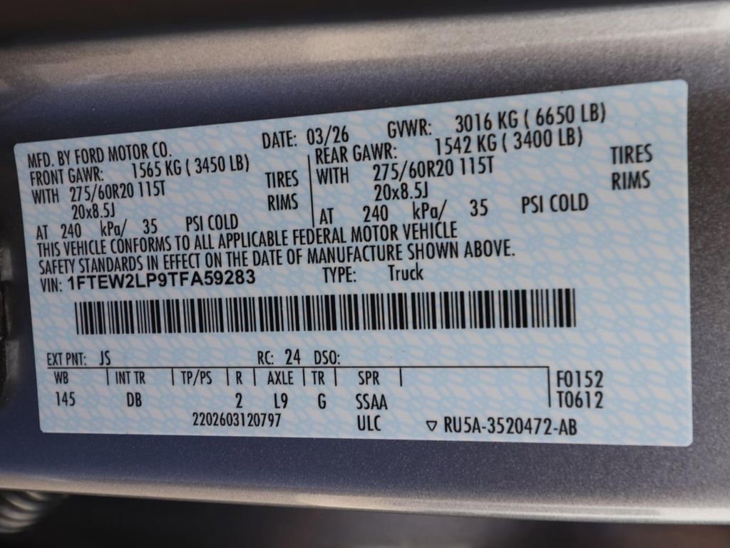 • VIN # 1FTEW2LP9TFA59283