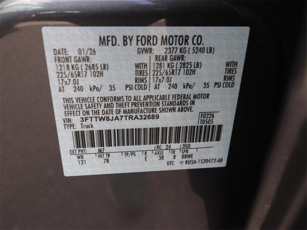 • VIN # 3FTTW8JA7TRA32689