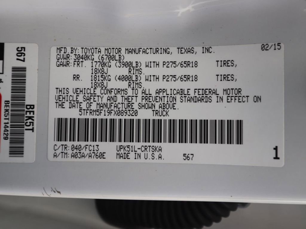 • VIN # 5TFRM5F19FX089320