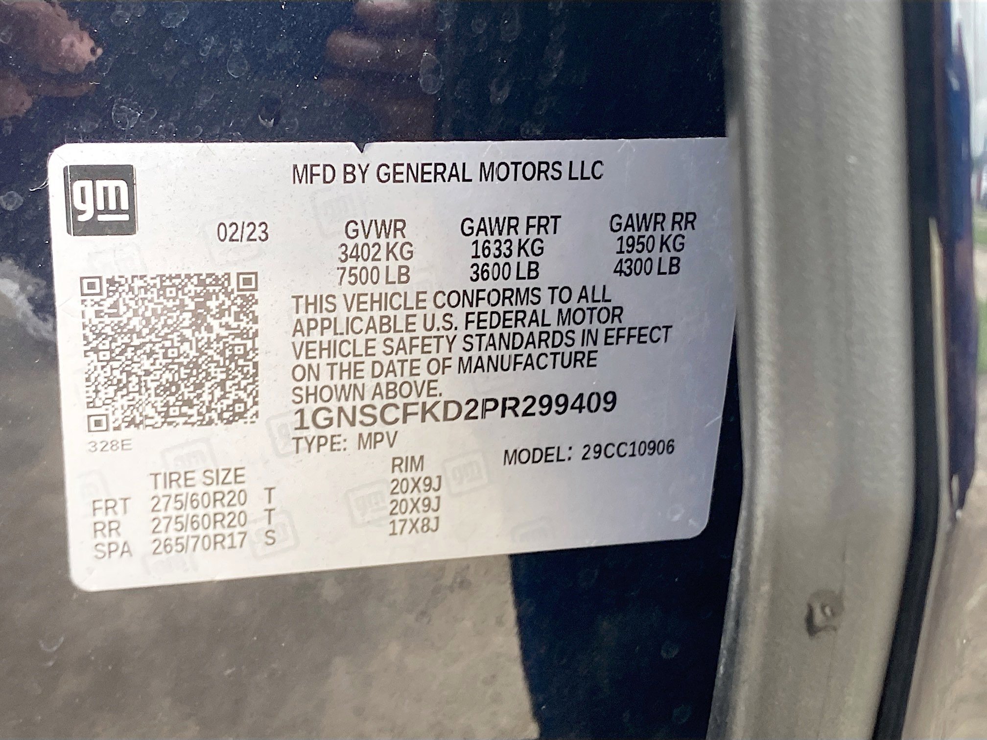• VIN # 1GNSCFKD2PR299409