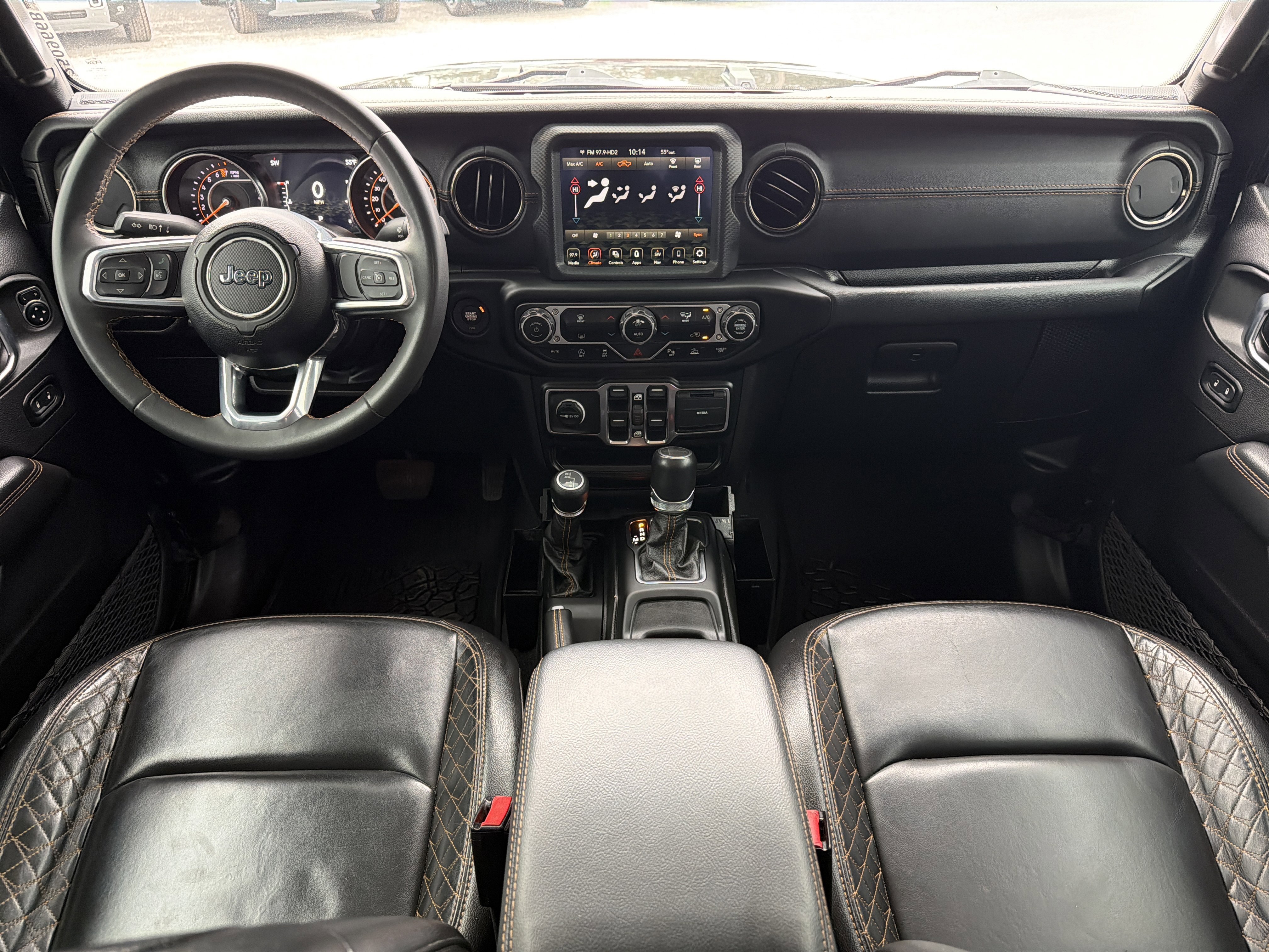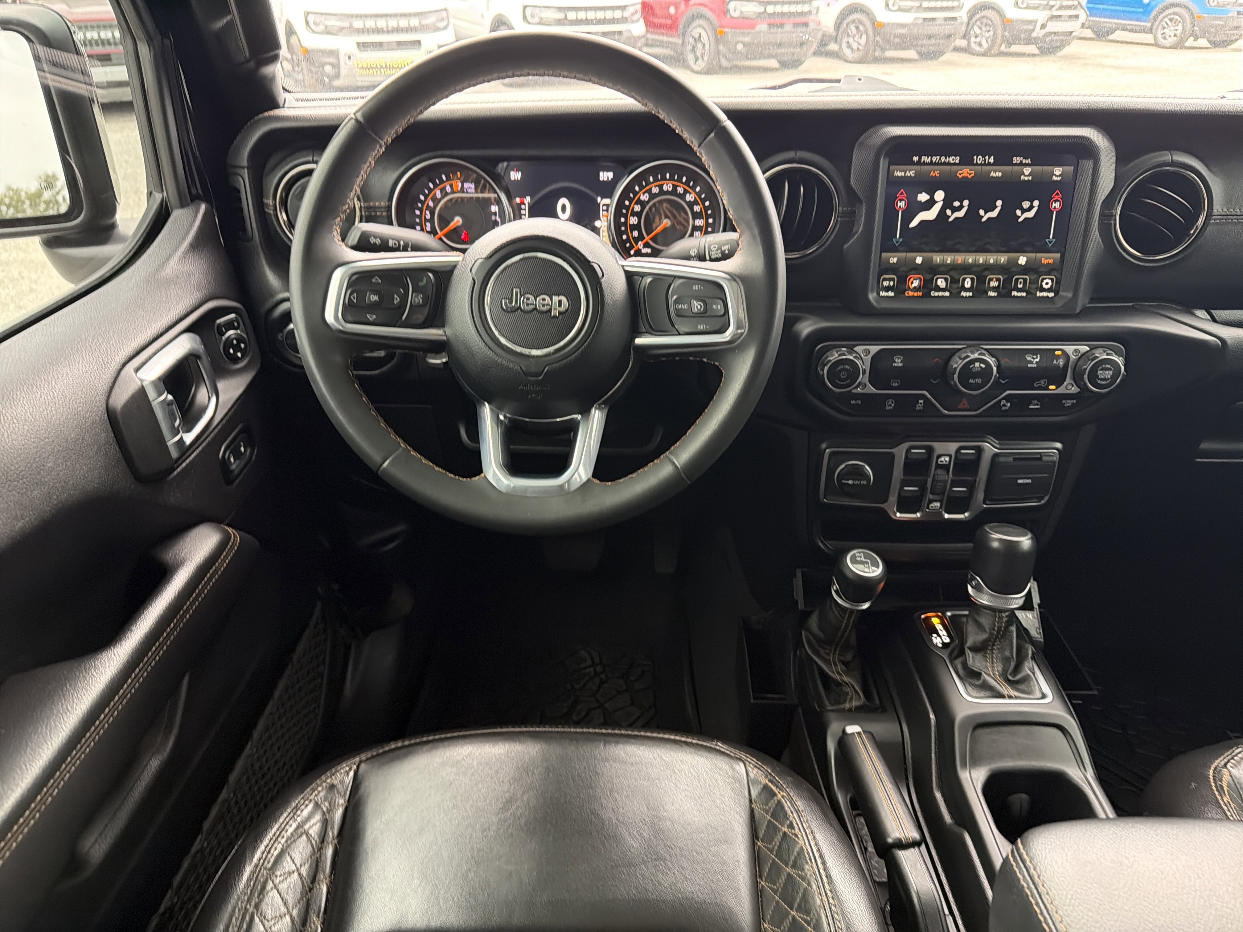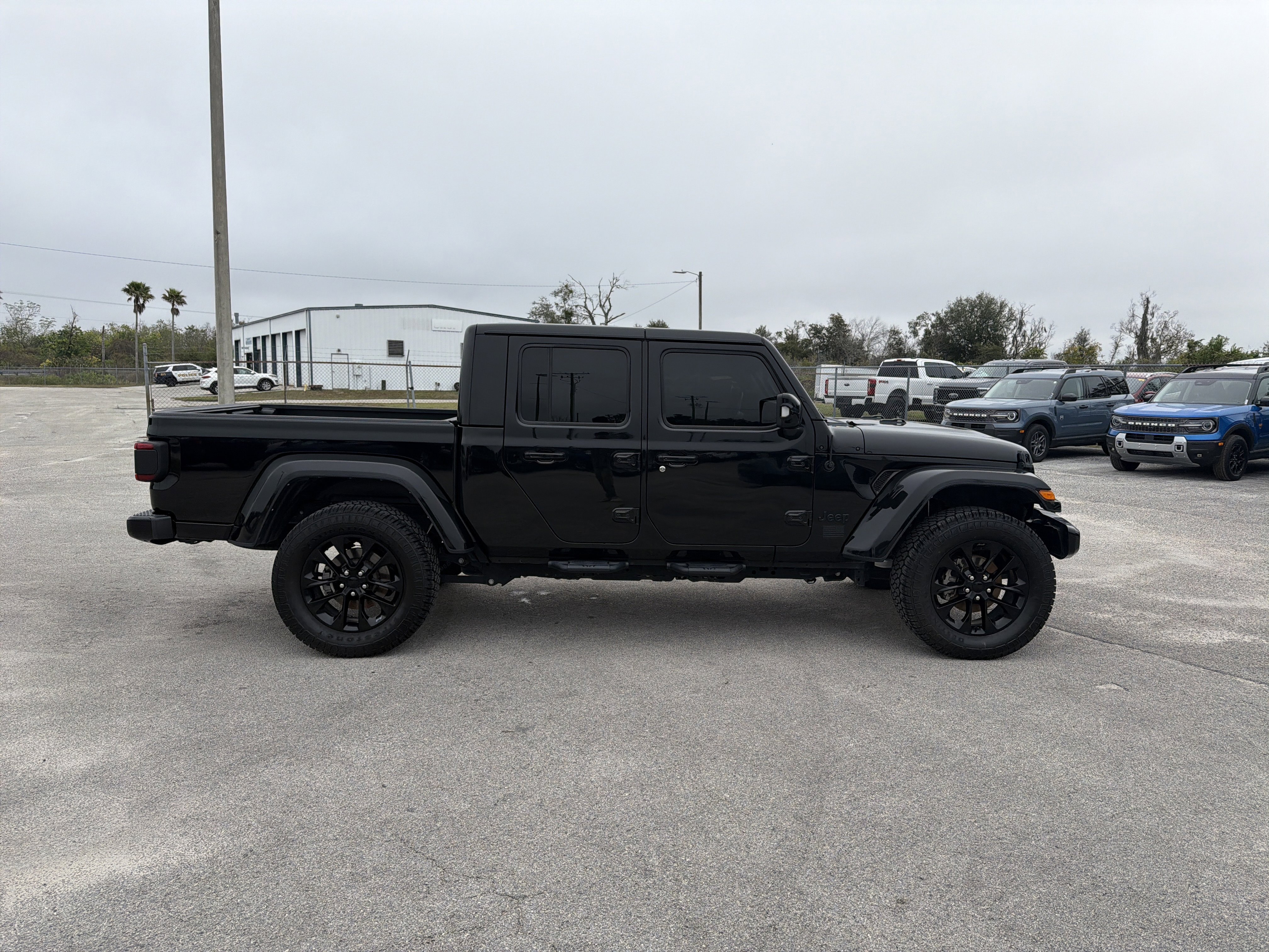 Black Clearcoat 2023 Jeep Gladiator High Altitude 4WD 8-Speed Automatic 3.6L V6 24V VVT ALLOY WHEELS, BACK UP CAMERA, BEST PRICE, BEST SELECTION!, BLUETOOTH, 3.73 Rear Axle Ratio, 4-Wheel Disc Brakes, 9 Speakers, ABS 4-Wheel HD Disc Brakes w/CI Knuckle, ABS brakes, Air Conditioning, AM/FM radio: SiriusXM, Apple CarPlay/Android Auto, Auto-dimming Rear-View mirror, Automatic temperature control, Blind Spot & Cross Path Detection, Body Color 3-Piece Hard Top, Body Color Front Bumper, Body Color Grille w/Gloss Black Rings, Body Color Rear Bumper w/Step Pads, Body-Color Door & Tailgate Handles, Brake assist, Caramel Interior Accents, Compass, Dana M210 Wide Front Axle, Dana M220 Wide Rear Axle, Daytime Running Lamps LED Accents, Delay-off headlights, Driver door bin, Driver vanity mirror, Dual front impact airbags, Dual front side impact airbags, Electronic Stability Control, Emergency communication system, Exterior Mirrors w/Supplemental Signals, Freedom Panel Storage Bag, Front anti-roll bar, Front Bucket Seats, Front Center Armrest w/Storage, Front dual zone A/C, Front fog lights, Front LED Fog Lamps, Front License Plate Bracket, Front reading lights, Full Body Color Fender Flares, Full Length Floor Console Premium Armrest, Fully automatic headlights, Garage door transmitter, Gloss Black Limited Badge, Gray/Black Trail Rated Badge, Heated door mirrors, Heated Steering Wheel, High Altitude Package, Illuminated entry, Integrated roll-over protection, Leather Wrapped Park Brake Handle, Leather Wrapped Shift Knob, LED Lighting Group, LED Park Turn Lamps, LED Premium Reflector Headlamps, LED Taillamps, Low tire pressure warning, Nappa Leather Seats, Navigation System, No Soft Top, Normal Duty Plus Suspension (DISC), Occupant sensing airbag, Outside temperature display, Overland Cloth Bucket Seats (DISC), Panic alarm, ParkSense Rear Park Assist System, ParkView Rear Back-Up Camera, Passenger door bin, Passenger vanity mirror, Power door mirrors, Power steering, Power windows, Premium Dark Exterior Accents, Quick Order Package 24N High Altitude, Radio data system, Radio: Uconnect 4C Nav w/8.4 Display, Rear anti-roll bar, Rear Armrest w/Cupholder Seat, Rear reading lights, Rear Sliding Window, Rear Window Defroster, Remote keyless entry, Safety Group, Security system, Selec-Speed Control, Side Steps, Speed control, Split folding rear seat, Sport Front Shock Absorbers, Sport Rear Shock Absorbers, Sport Suspension, Steering wheel mounted audio controls, Tachometer, Telescoping steering wheel, Tilt steering wheel, Traction control, Trip computer, Variably intermittent wipers, Voltmeter, Wheels: 20 x 8 Gloss Black Aluminum, Wrapped I/P Bezel w/Caramel Stitch.