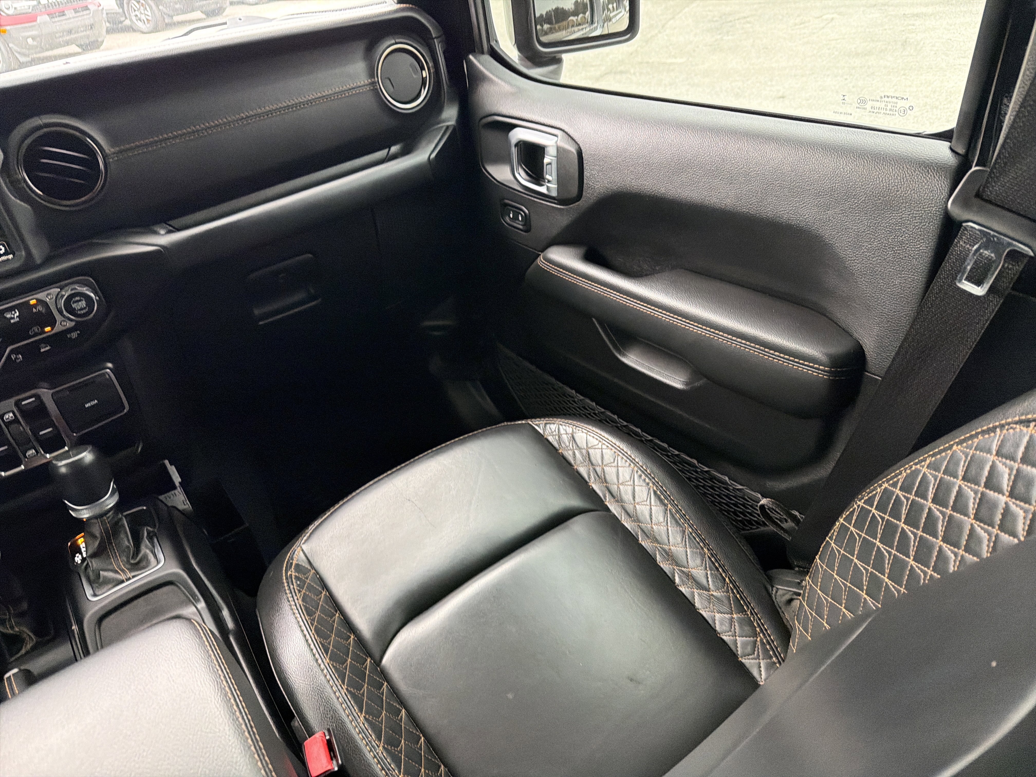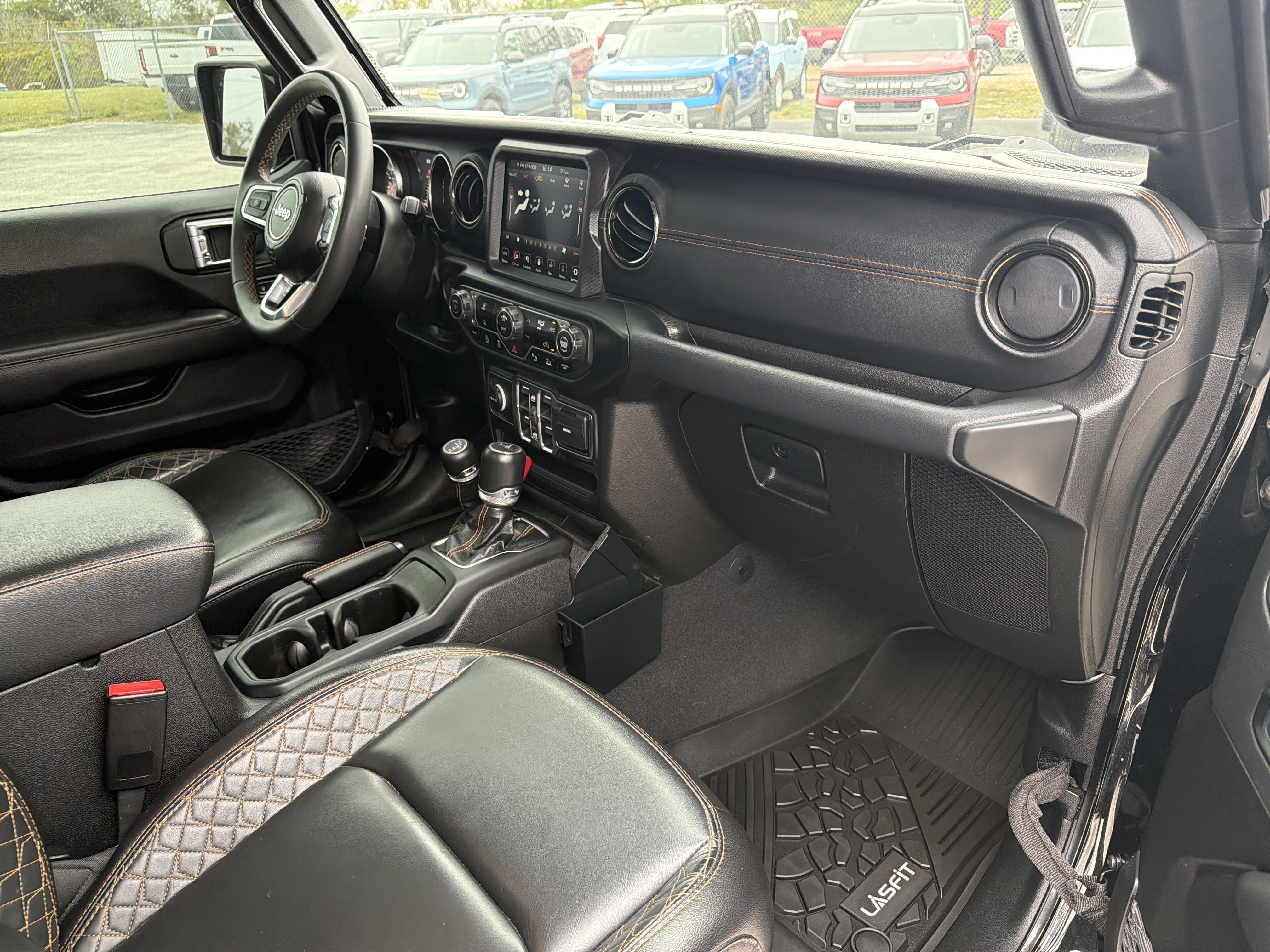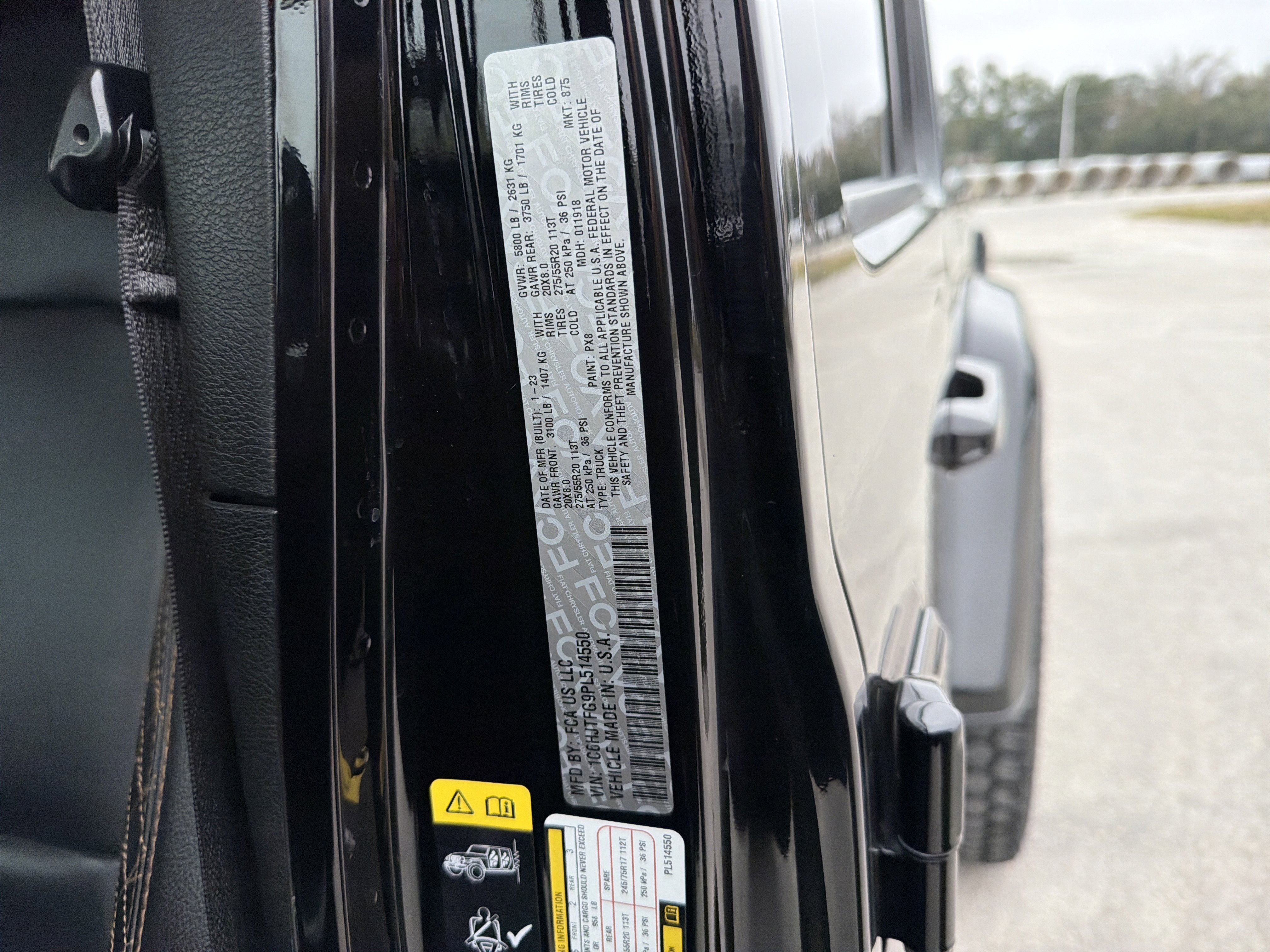 Black Clearcoat 2023 Jeep Gladiator High Altitude 4WD 8-Speed Automatic 3.6L V6 24V VVT ALLOY WHEELS, BACK UP CAMERA, BEST PRICE, BEST SELECTION!, BLUETOOTH, 3.73 Rear Axle Ratio, 4-Wheel Disc Brakes, 9 Speakers, ABS 4-Wheel HD Disc Brakes w/CI Knuckle, ABS brakes, Air Conditioning, AM/FM radio: SiriusXM, Apple CarPlay/Android Auto, Auto-dimming Rear-View mirror, Automatic temperature control, Blind Spot & Cross Path Detection, Body Color 3-Piece Hard Top, Body Color Front Bumper, Body Color Grille w/Gloss Black Rings, Body Color Rear Bumper w/Step Pads, Body-Color Door & Tailgate Handles, Brake assist, Caramel Interior Accents, Compass, Dana M210 Wide Front Axle, Dana M220 Wide Rear Axle, Daytime Running Lamps LED Accents, Delay-off headlights, Driver door bin, Driver vanity mirror, Dual front impact airbags, Dual front side impact airbags, Electronic Stability Control, Emergency communication system, Exterior Mirrors w/Supplemental Signals, Freedom Panel Storage Bag, Front anti-roll bar, Front Bucket Seats, Front Center Armrest w/Storage, Front dual zone A/C, Front fog lights, Front LED Fog Lamps, Front License Plate Bracket, Front reading lights, Full Body Color Fender Flares, Full Length Floor Console Premium Armrest, Fully automatic headlights, Garage door transmitter, Gloss Black Limited Badge, Gray/Black Trail Rated Badge, Heated door mirrors, Heated Steering Wheel, High Altitude Package, Illuminated entry, Integrated roll-over protection, Leather Wrapped Park Brake Handle, Leather Wrapped Shift Knob, LED Lighting Group, LED Park Turn Lamps, LED Premium Reflector Headlamps, LED Taillamps, Low tire pressure warning, Nappa Leather Seats, Navigation System, No Soft Top, Normal Duty Plus Suspension (DISC), Occupant sensing airbag, Outside temperature display, Overland Cloth Bucket Seats (DISC), Panic alarm, ParkSense Rear Park Assist System, ParkView Rear Back-Up Camera, Passenger door bin, Passenger vanity mirror, Power door mirrors, Power steering, Power windows, Premium Dark Exterior Accents, Quick Order Package 24N High Altitude, Radio data system, Radio: Uconnect 4C Nav w/8.4 Display, Rear anti-roll bar, Rear Armrest w/Cupholder Seat, Rear reading lights, Rear Sliding Window, Rear Window Defroster, Remote keyless entry, Safety Group, Security system, Selec-Speed Control, Side Steps, Speed control, Split folding rear seat, Sport Front Shock Absorbers, Sport Rear Shock Absorbers, Sport Suspension, Steering wheel mounted audio controls, Tachometer, Telescoping steering wheel, Tilt steering wheel, Traction control, Trip computer, Variably intermittent wipers, Voltmeter, Wheels: 20 x 8 Gloss Black Aluminum, Wrapped I/P Bezel w/Caramel Stitch.