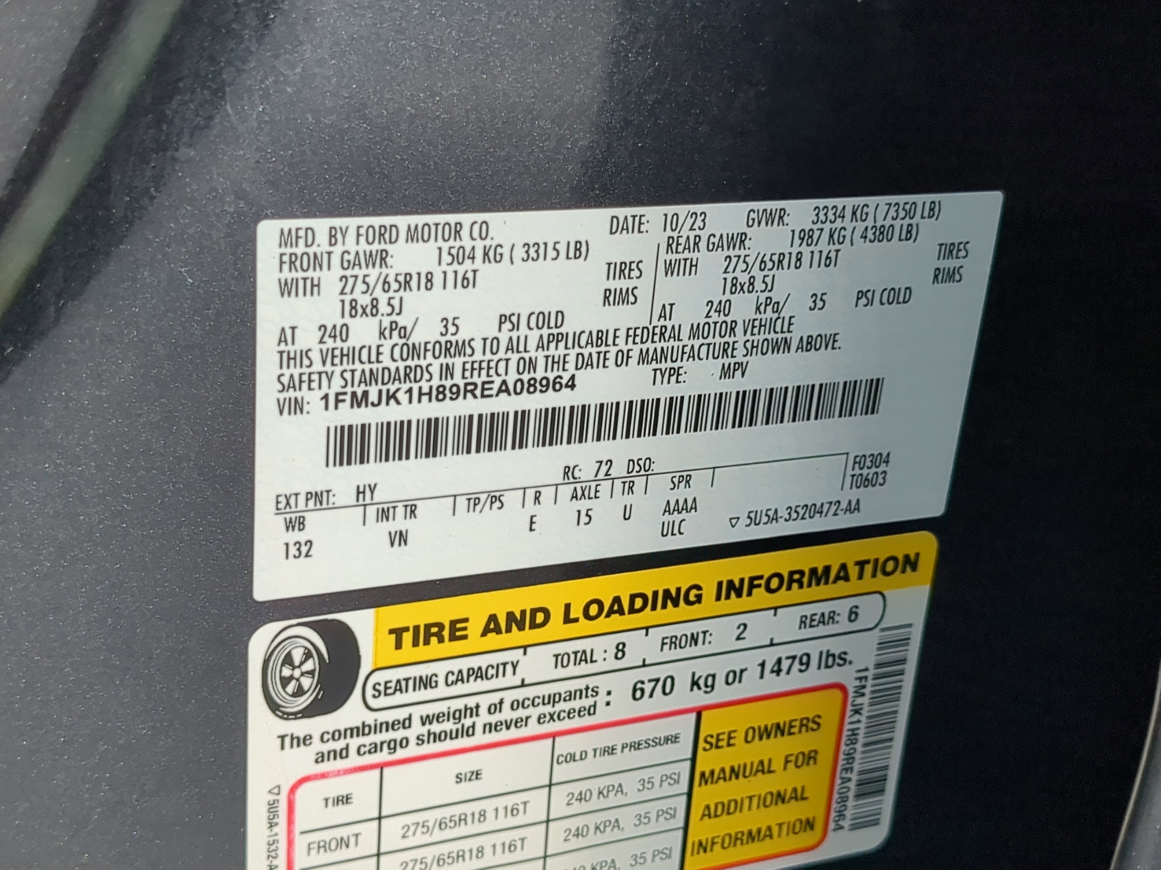 18" Machined-Face Aluminum Wheels, 3.31 Axle Ratio, 3rd row seats: split-bench, 4-Wheel Disc Brakes, 6 Speakers, ABS brakes, Air Conditioning, Alloy wheels, AM/FM radio: SiriusXM with 360L, Auto High-beam Headlights, Auto-dimming Rear-View mirror, Automatic temperature control, Brake assist, Bumpers: body-color, Cloth Front Captain's Chairs, Compass, Delay-off headlights, Driver door bin, Driver vanity mirror, Dual front impact airbags, Dual front side impact airbags, Electronic Stability Control, Emergency communication system: SYNC 4 911 Assist, Exterior Parking Camera Rear, Four wheel independent suspension, Front anti-roll bar, Front Bucket Seats, Front Center Armrest, Front dual zone A/C, Front reading lights, Fully automatic headlights, Garage door transmitter, Heated door mirrors, Illuminated entry, Leather steering wheel, Low tire pressure warning, Navigation system: Connected Navigation, Occupant sensing airbag, Outside temperature display, Overhead airbag, Overhead console, Panic alarm, Passenger door bin, Passenger vanity mirror, Power door mirrors, Power driver seat, Power steering, Power windows, Radio data system, Radio: AM/FM Stereo w/MP3 Capable, Rear air conditioning, Rear anti-roll bar, Rear reading lights, Rear window defroster, Rear window wiper, Reclining 3rd row seat, Remote keyless entry, Security system, SiriusXM w/360L, Speed control, Speed-sensing steering, Speed-Sensitive Wipers, Split folding rear seat, Spoiler, Steering wheel mounted audio controls, SYNC 4 w/Enhanced Voice Recognition, Tachometer, Telescoping steering wheel, Tilt steering wheel, Traction control, Trip computer, Variably intermittent wipers, Voltmeter, WE DELIVER ANYWHERE!, SMART FINANCE OPTIONS!, PRICED RIGHT DAILY!, STRESS FREE PAYMENT PLANS FOR EVERYONE!, HOME DELIVERY, CURBSIDE PICKUP! ITS EASY!, INTERNET BUYERS! PLEASE DONT DELAY!.