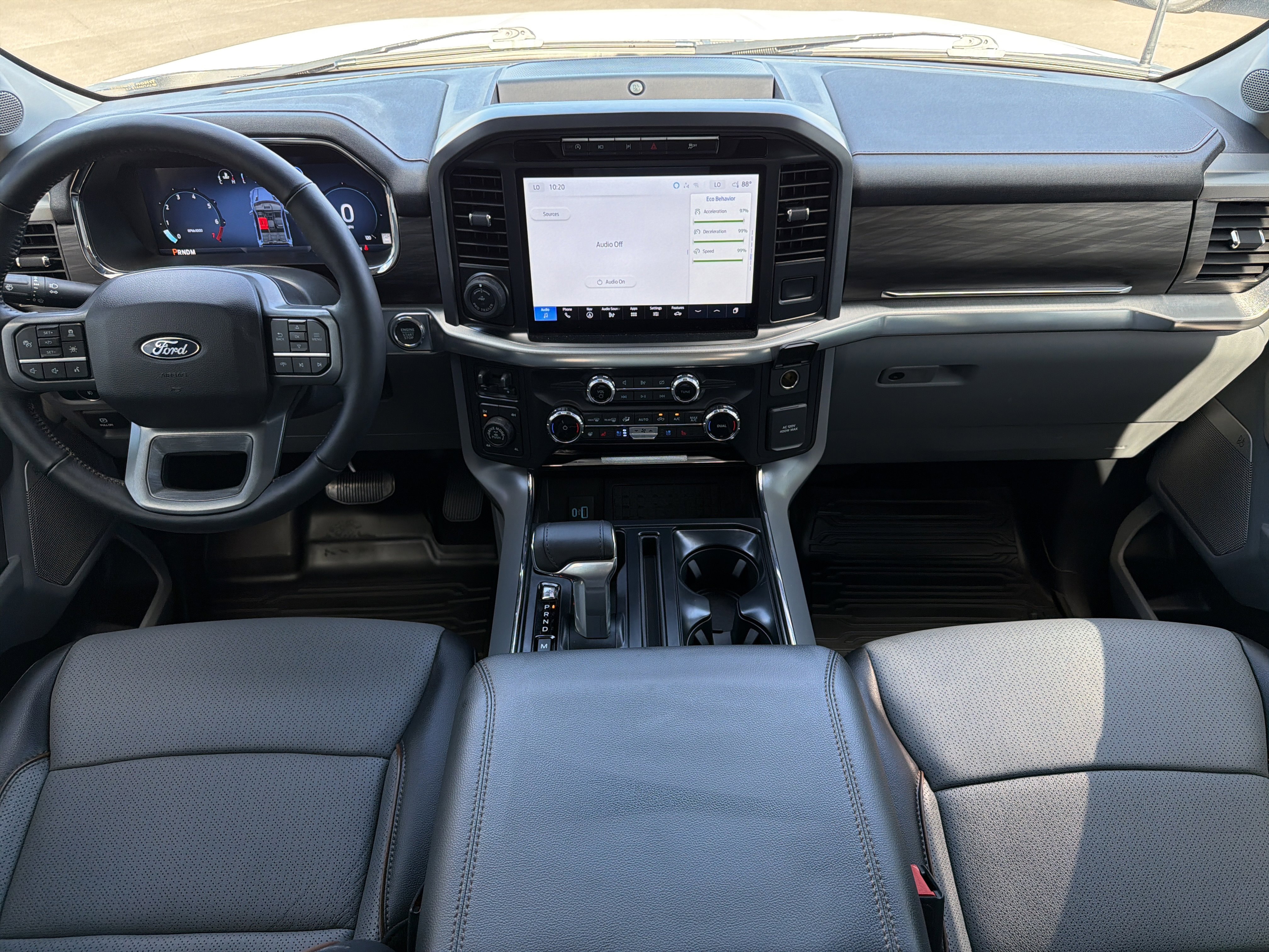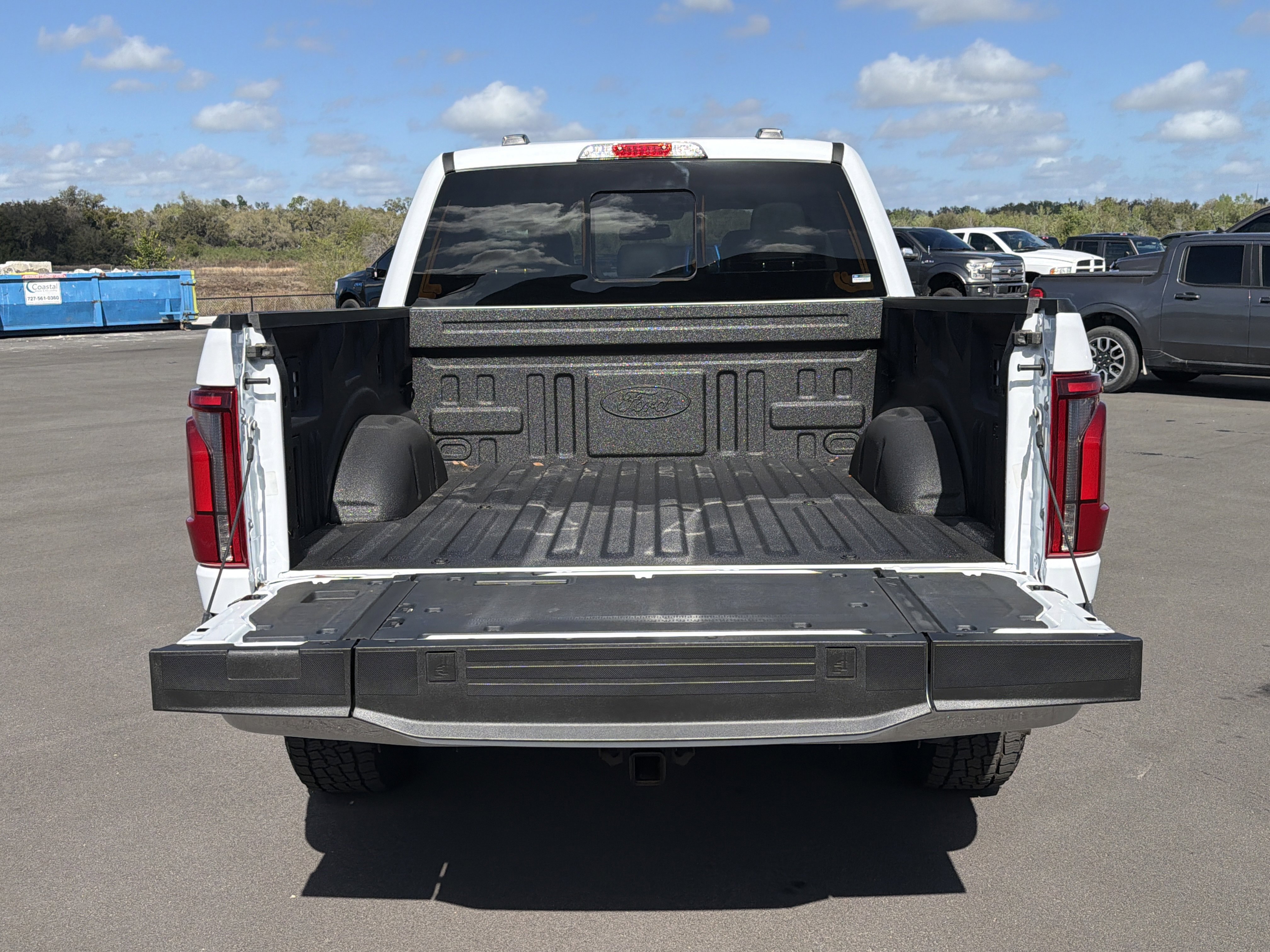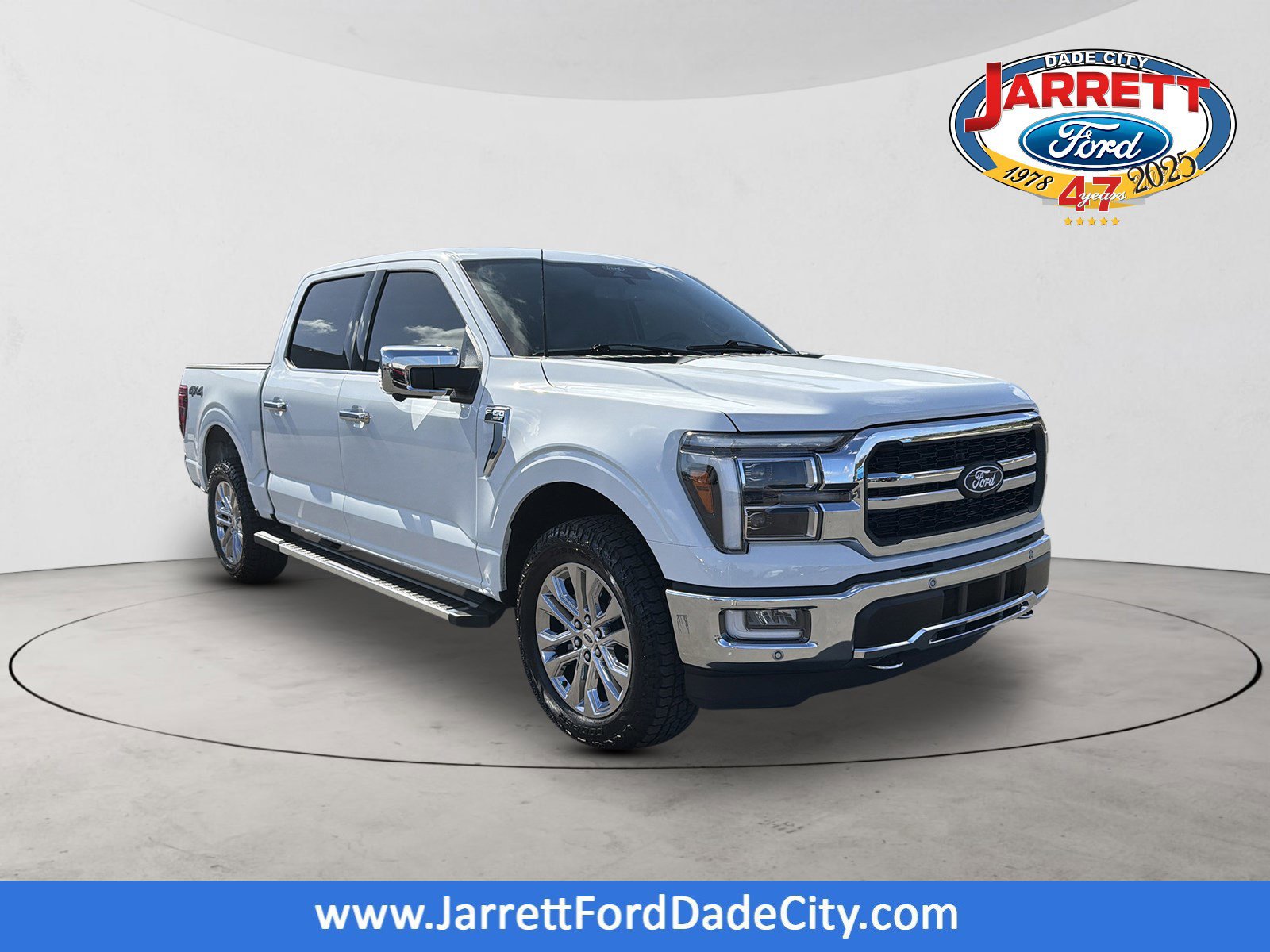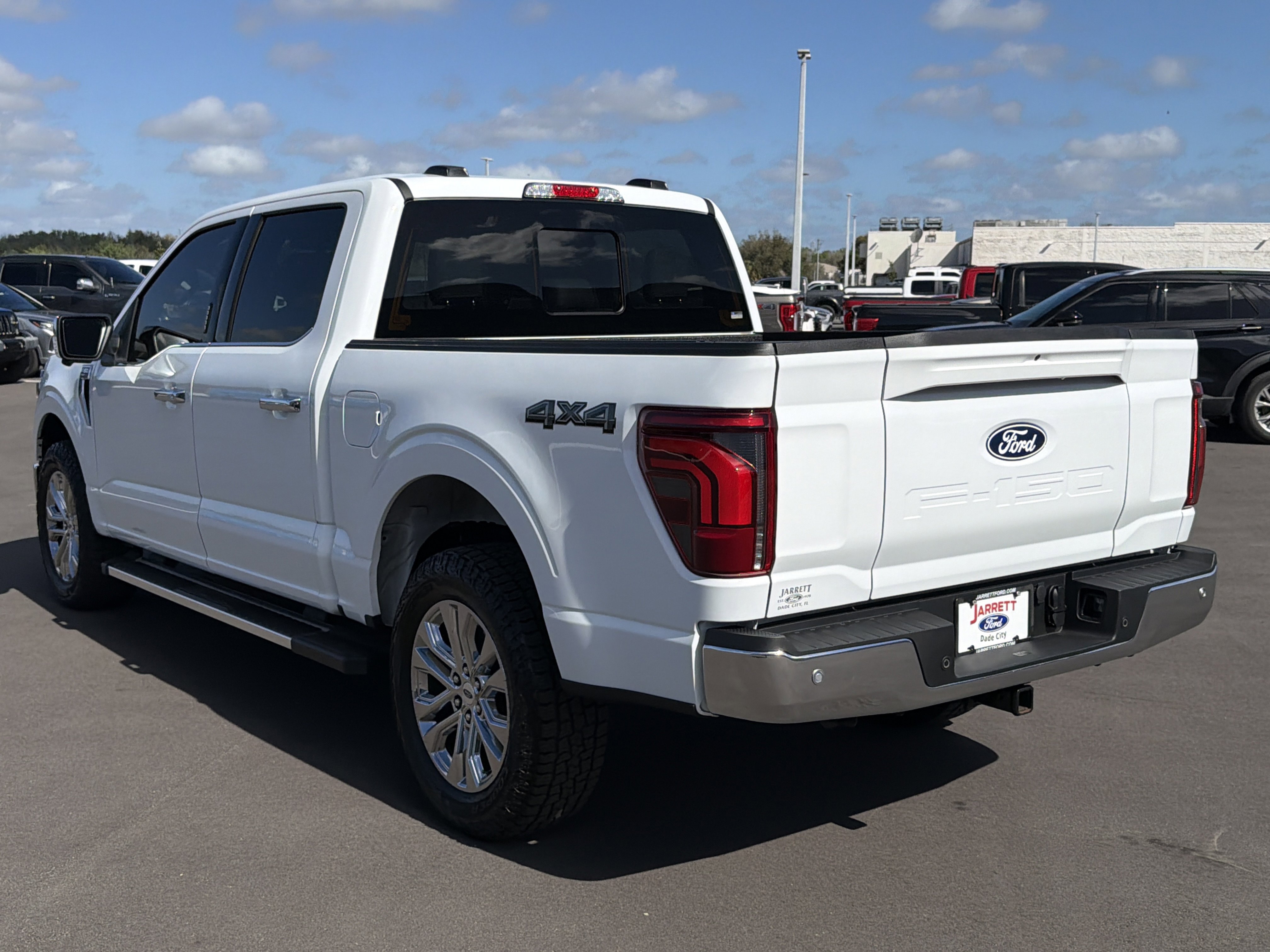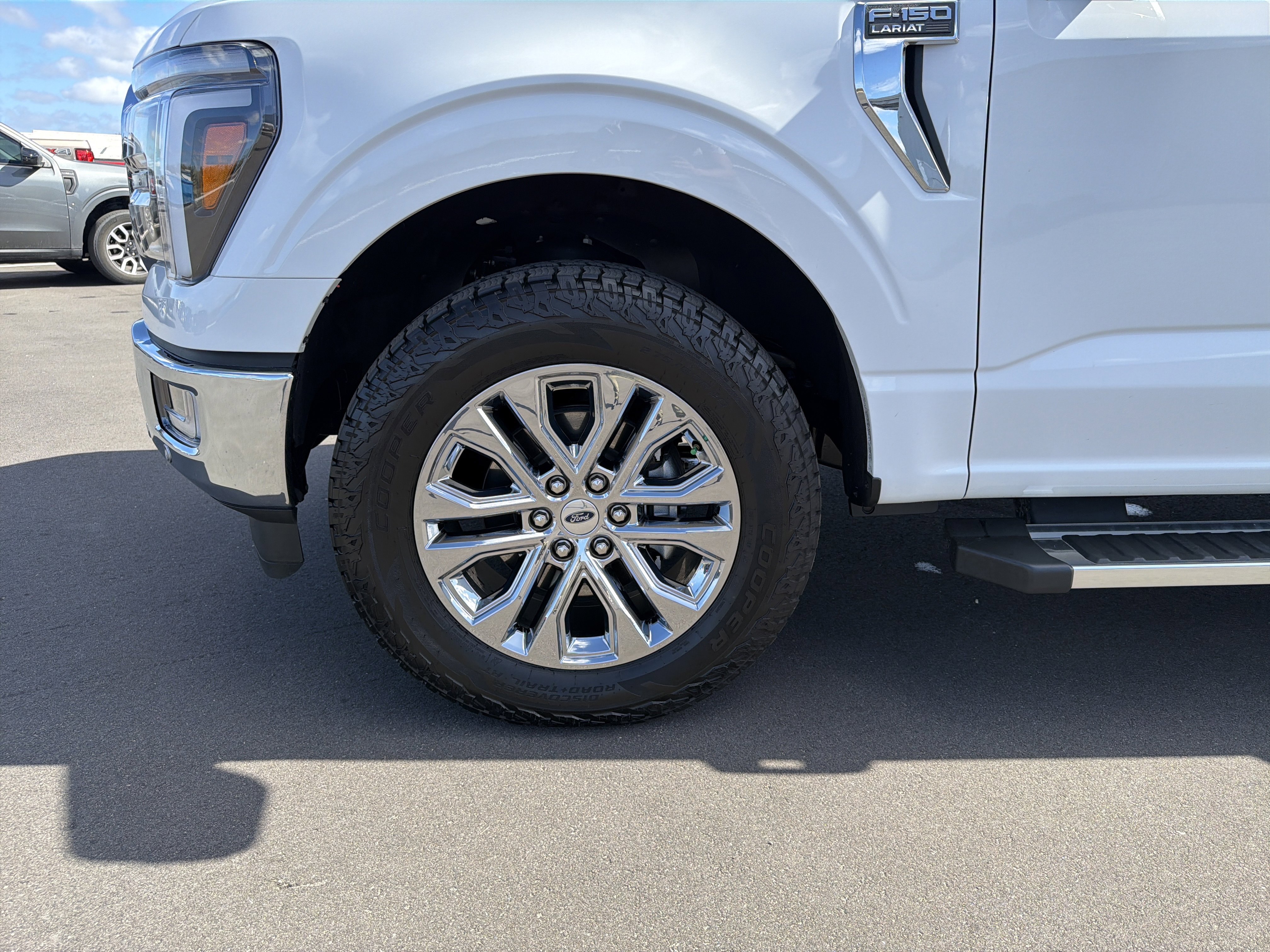 Certified. Oxford White 2024 Ford F-150 Lariat 4WD 10-Speed Automatic 3.5L V6 EcoBoost 4WD, 4 Pickup Box Tie-Down Plates, 4-Wheel Disc Brakes, 6 Extended Running Boards, 8 Speakers, ABS brakes, Adjustable pedals, Air Conditioning, AM/FM radio: SiriusXM with 360L, Auto High-beam Headlights, Auto-dimming door mirrors, Auto-dimming Rear-View mirror, Automatic temperature control, Bed Utility Package, Brake assist, Bumpers: chrome, Compass, Console Worksurface, Delay-off headlights, Driver door bin, Driver vanity mirror, Dual front impact airbags, Dual front side impact airbags, Electronic Stability Control, Emergency communication system: SYNC 4 911 Assist, Equipment Group 501A Standard, Front anti-roll bar, Front Bucket Seats, Front Center Armrest, Front dual zone A/C, Front fog lights, Front reading lights, Front wheel independent suspension, Fully automatic headlights, Garage door transmitter, Heated door mirrors, Heated front seats, Heated steering wheel, Illuminated entry, Integrated Trailer Brake Controller, Leather-Trimmed Bucket Seats, LED Box Lighting, Low tire pressure warning, Memory seat, Mobile Office Package, Navigation system: Connected Navigation, Occupant sensing airbag, Outside temperature display, Overhead airbag, Overhead console, Panic alarm, Partitioned Lockable Rear Storage, Passenger vanity mirror, Pedal memory, Power door mirrors, Power driver seat, Power passenger seat, Power steering, Power Tailgate, Power windows, Pro Access Tailgate, Radio data system, Radio: B&O Sound System by Bang & Olufsen, Rain sensing wipers, Rear reading lights, Rear seat center armrest, Rear step bumper, Rear window defroster, Remote keyless entry, Security system, Speed control, Split folding rear seat, Steering wheel mounted audio controls, SYNC 4 w/Enhanced Voice Recognition, Tachometer, Telescoping steering wheel, Tilt steering wheel, Tough Bed Spray-In Bedliner, Tow/Haul Package, Traction control, Trip computer, Turn signal indicator mirrors, Variably intermittent wipers, Ventilated front seats, Voltmeter, Wheels: 20 Chrome-Like PVD, Wireless Charging.