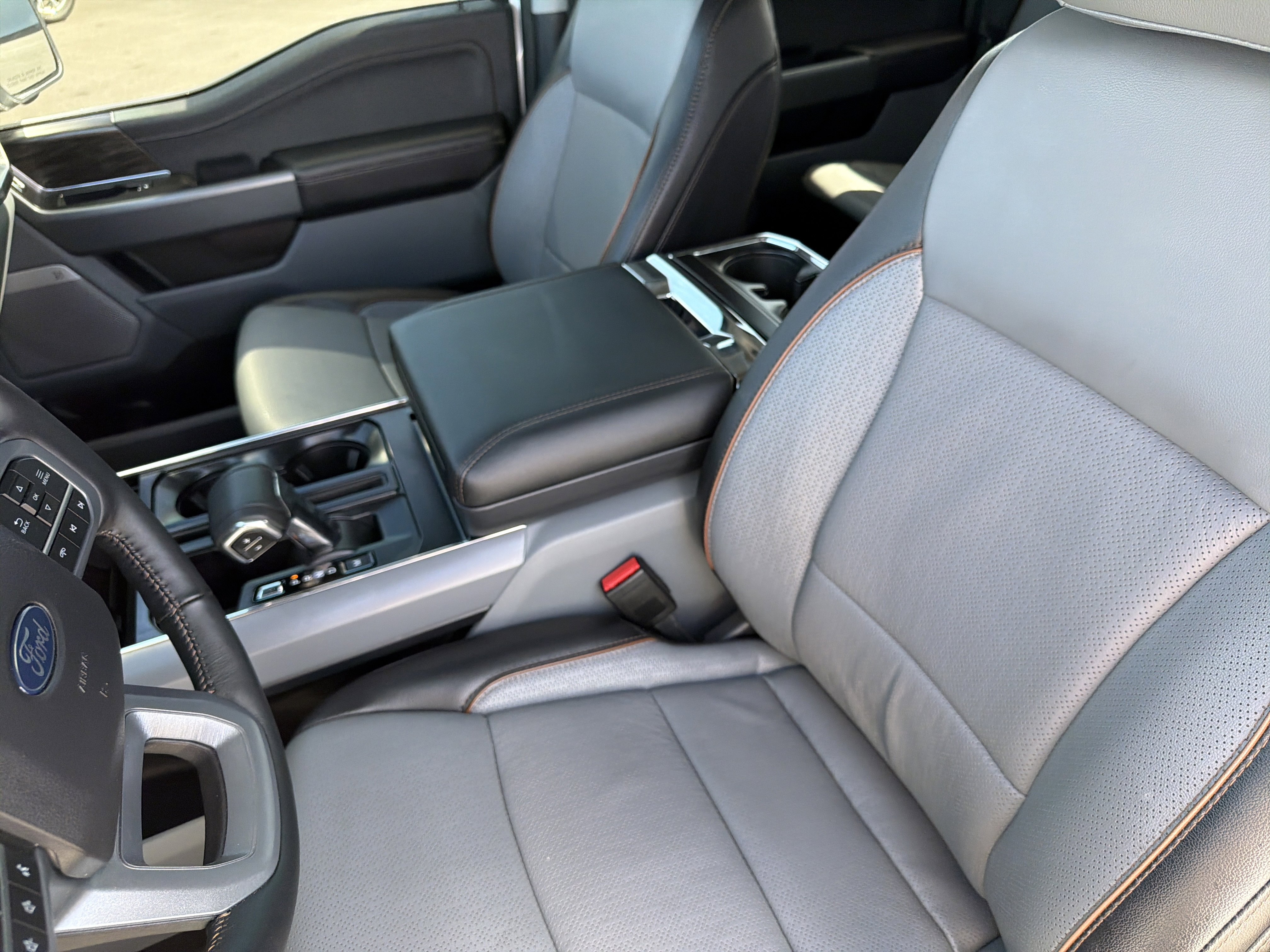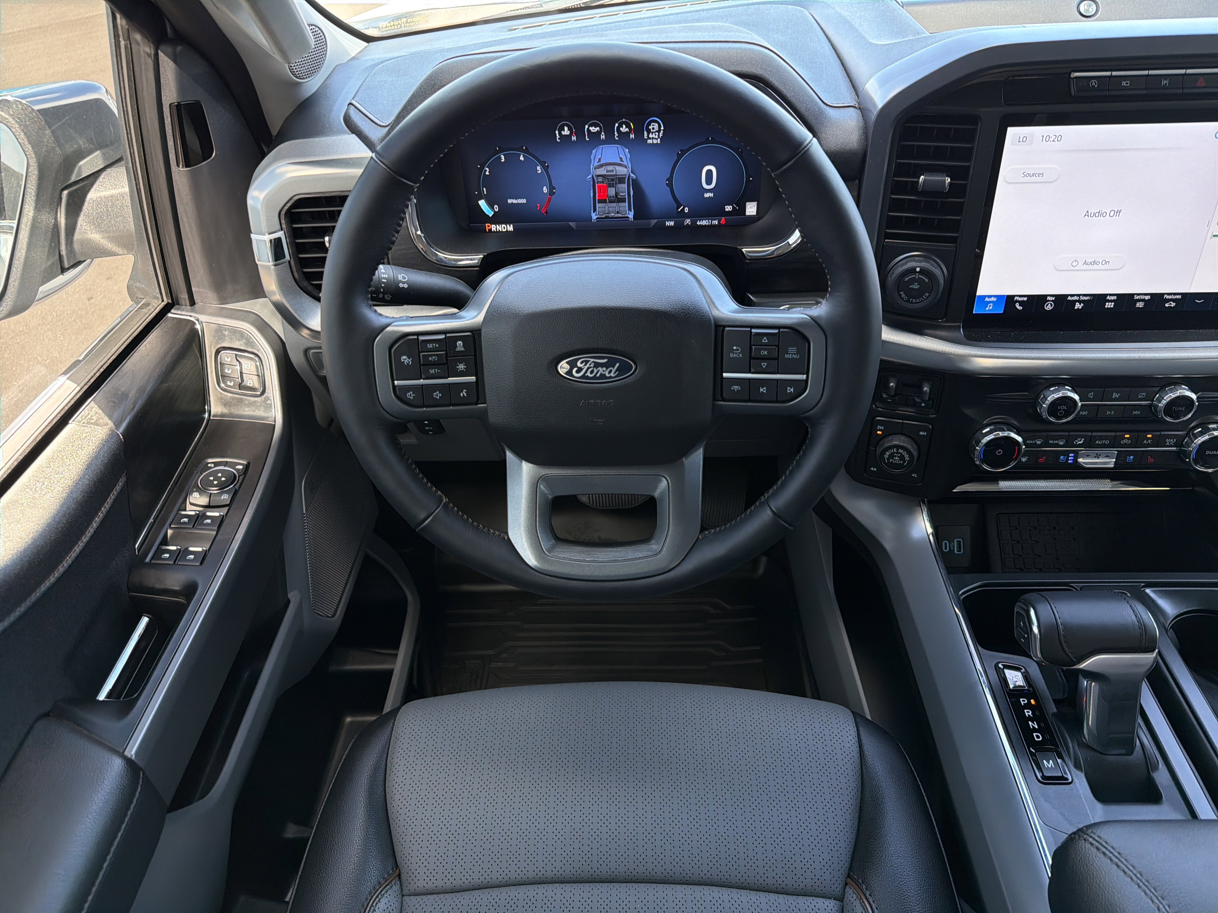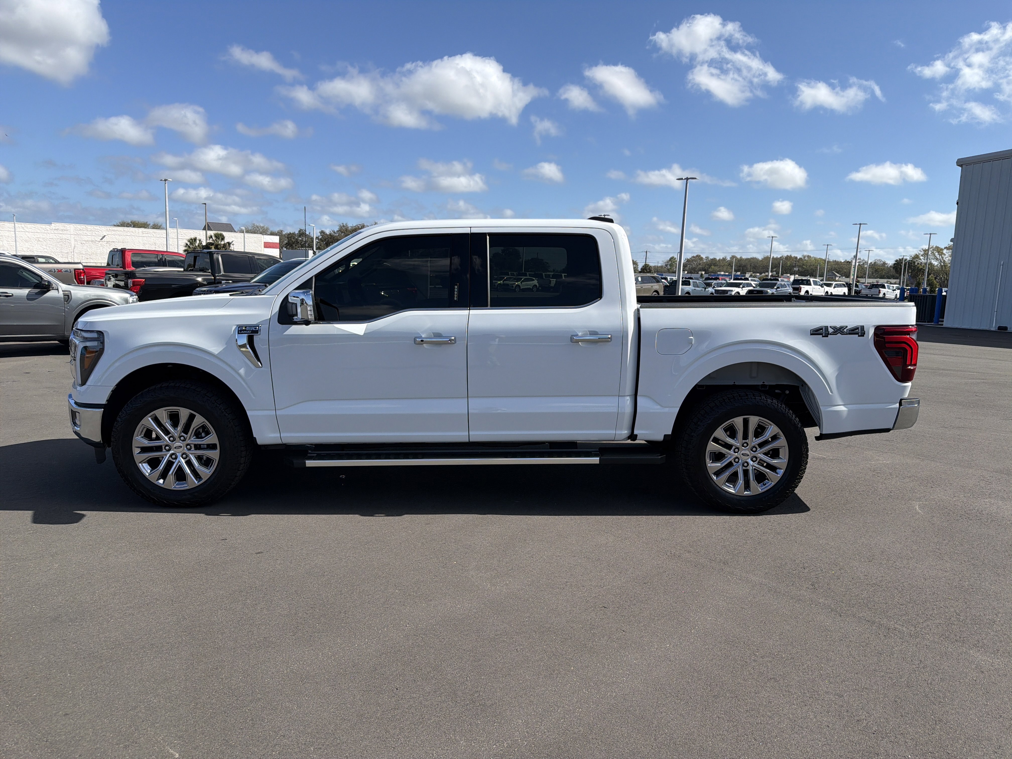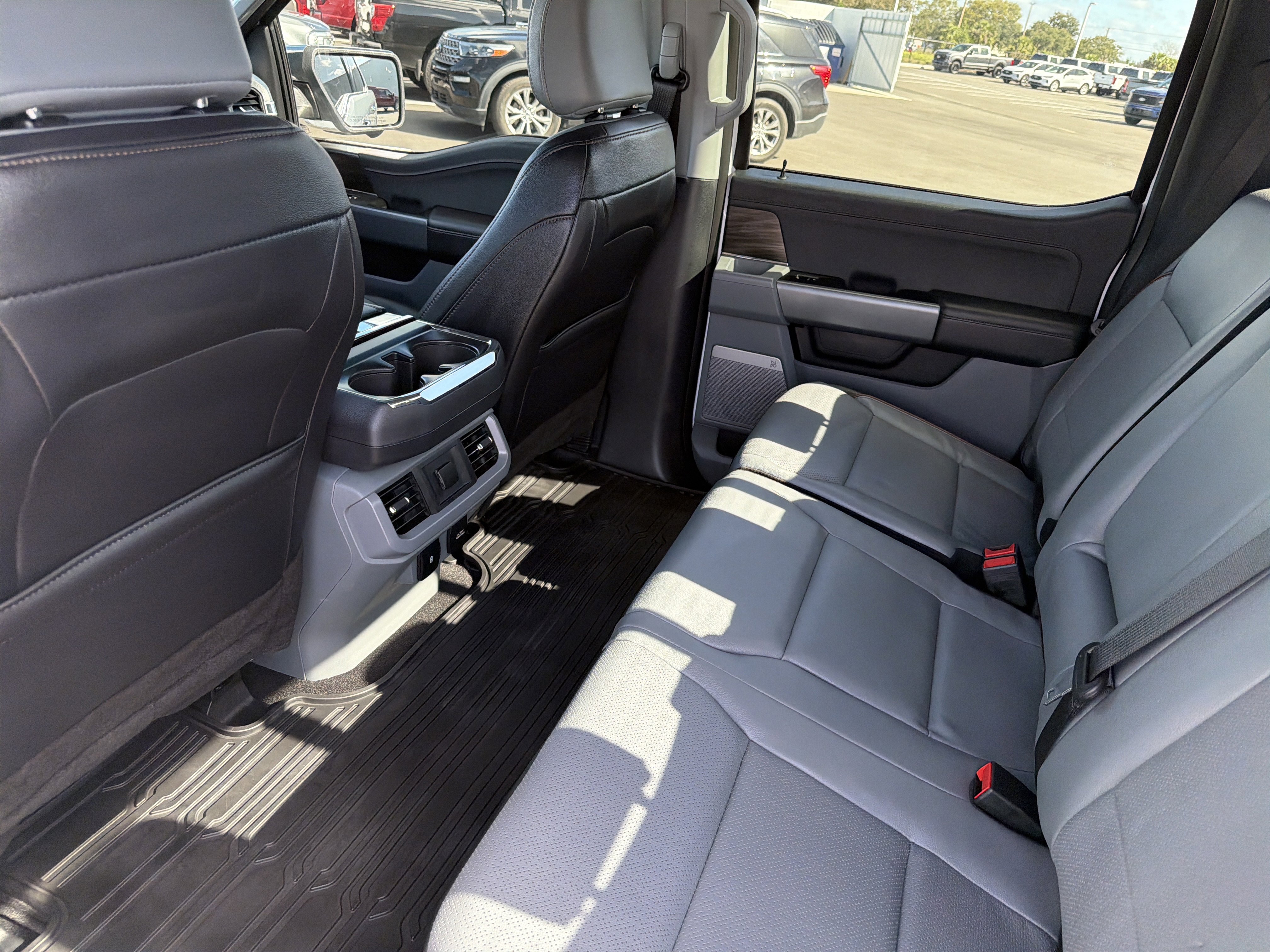 Certified. Oxford White 2024 Ford F-150 Lariat 4WD 10-Speed Automatic 3.5L V6 EcoBoost 4WD, 4 Pickup Box Tie-Down Plates, 4-Wheel Disc Brakes, 6 Extended Running Boards, 8 Speakers, ABS brakes, Adjustable pedals, Air Conditioning, AM/FM radio: SiriusXM with 360L, Auto High-beam Headlights, Auto-dimming door mirrors, Auto-dimming Rear-View mirror, Automatic temperature control, Bed Utility Package, Brake assist, Bumpers: chrome, Compass, Console Worksurface, Delay-off headlights, Driver door bin, Driver vanity mirror, Dual front impact airbags, Dual front side impact airbags, Electronic Stability Control, Emergency communication system: SYNC 4 911 Assist, Equipment Group 501A Standard, Front anti-roll bar, Front Bucket Seats, Front Center Armrest, Front dual zone A/C, Front fog lights, Front reading lights, Front wheel independent suspension, Fully automatic headlights, Garage door transmitter, Heated door mirrors, Heated front seats, Heated steering wheel, Illuminated entry, Integrated Trailer Brake Controller, Leather-Trimmed Bucket Seats, LED Box Lighting, Low tire pressure warning, Memory seat, Mobile Office Package, Navigation system: Connected Navigation, Occupant sensing airbag, Outside temperature display, Overhead airbag, Overhead console, Panic alarm, Partitioned Lockable Rear Storage, Passenger vanity mirror, Pedal memory, Power door mirrors, Power driver seat, Power passenger seat, Power steering, Power Tailgate, Power windows, Pro Access Tailgate, Radio data system, Radio: B&O Sound System by Bang & Olufsen, Rain sensing wipers, Rear reading lights, Rear seat center armrest, Rear step bumper, Rear window defroster, Remote keyless entry, Security system, Speed control, Split folding rear seat, Steering wheel mounted audio controls, SYNC 4 w/Enhanced Voice Recognition, Tachometer, Telescoping steering wheel, Tilt steering wheel, Tough Bed Spray-In Bedliner, Tow/Haul Package, Traction control, Trip computer, Turn signal indicator mirrors, Variably intermittent wipers, Ventilated front seats, Voltmeter, Wheels: 20 Chrome-Like PVD, Wireless Charging.