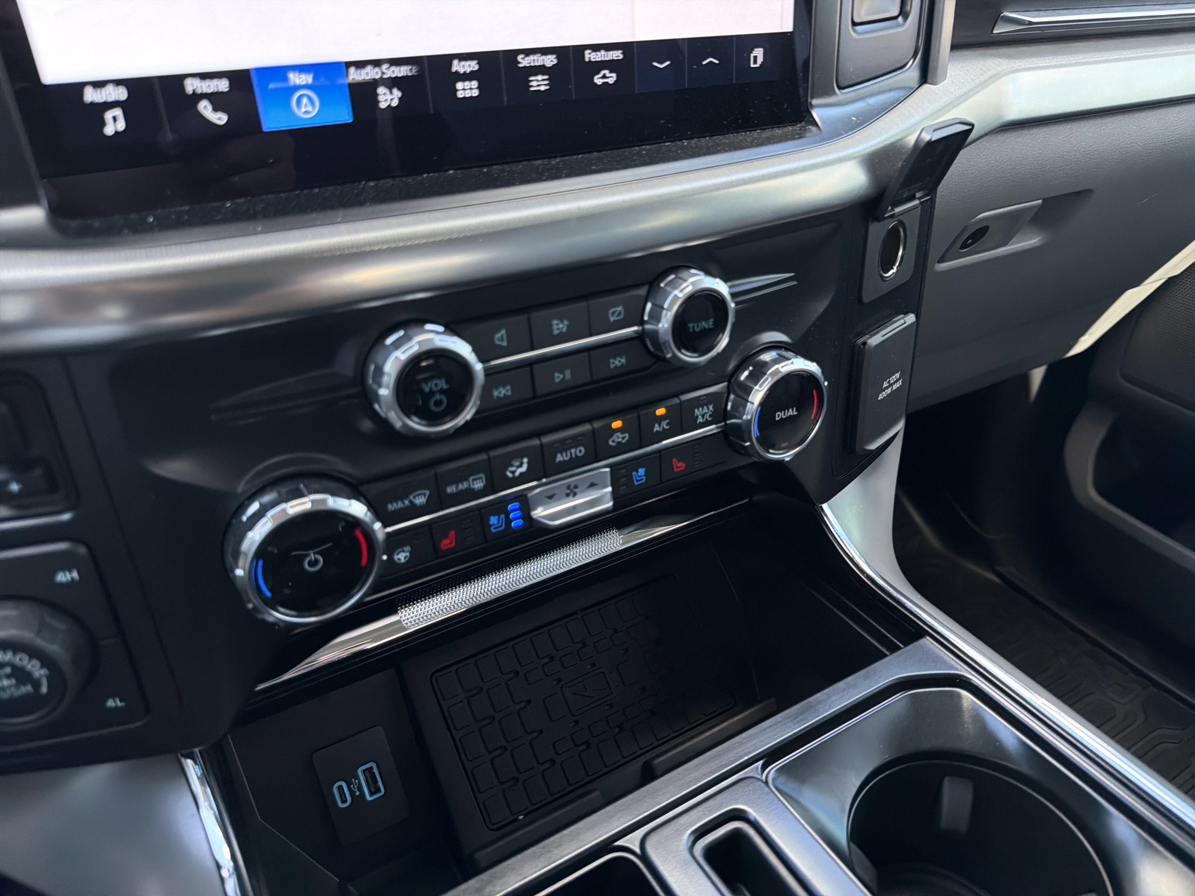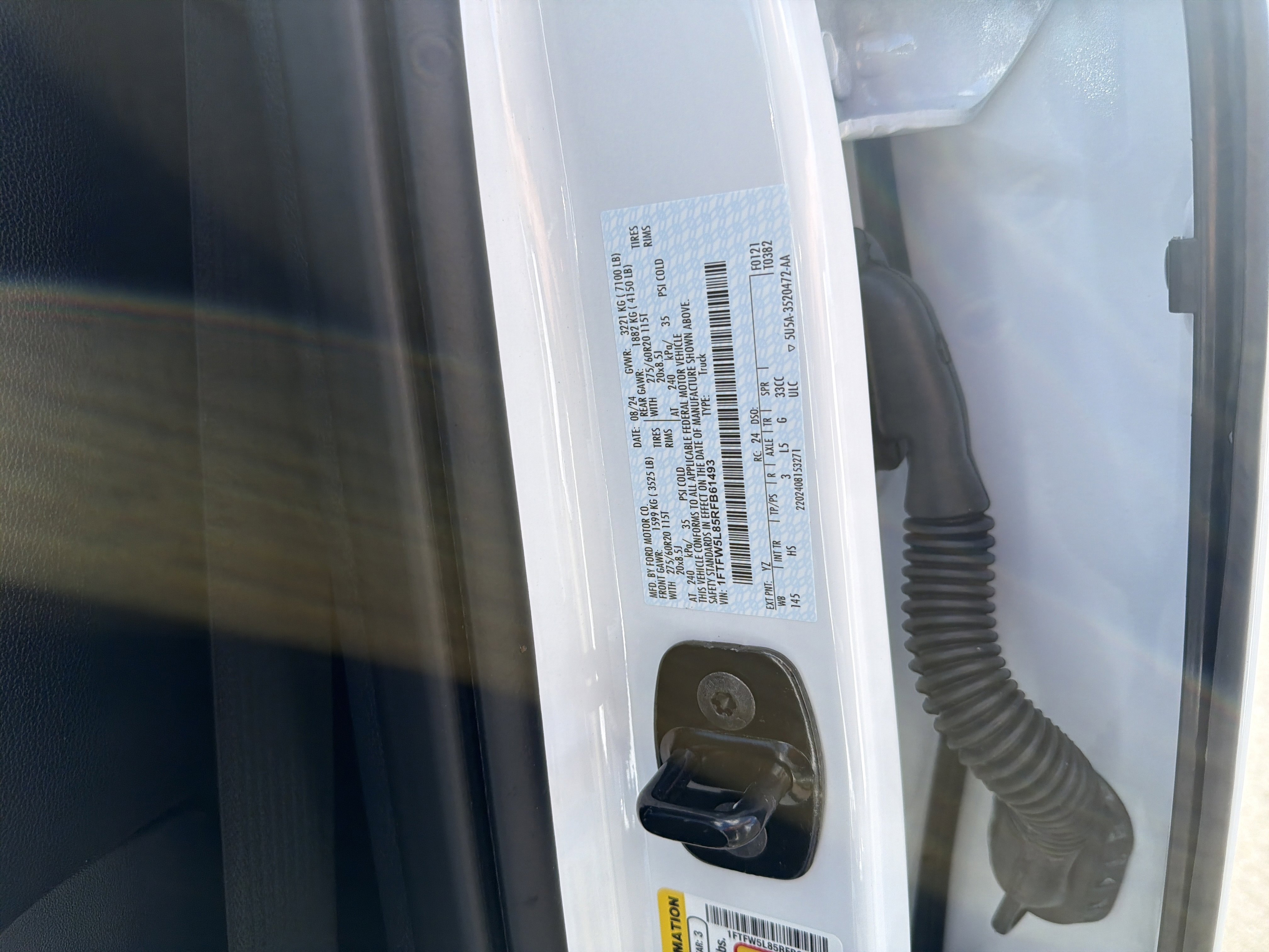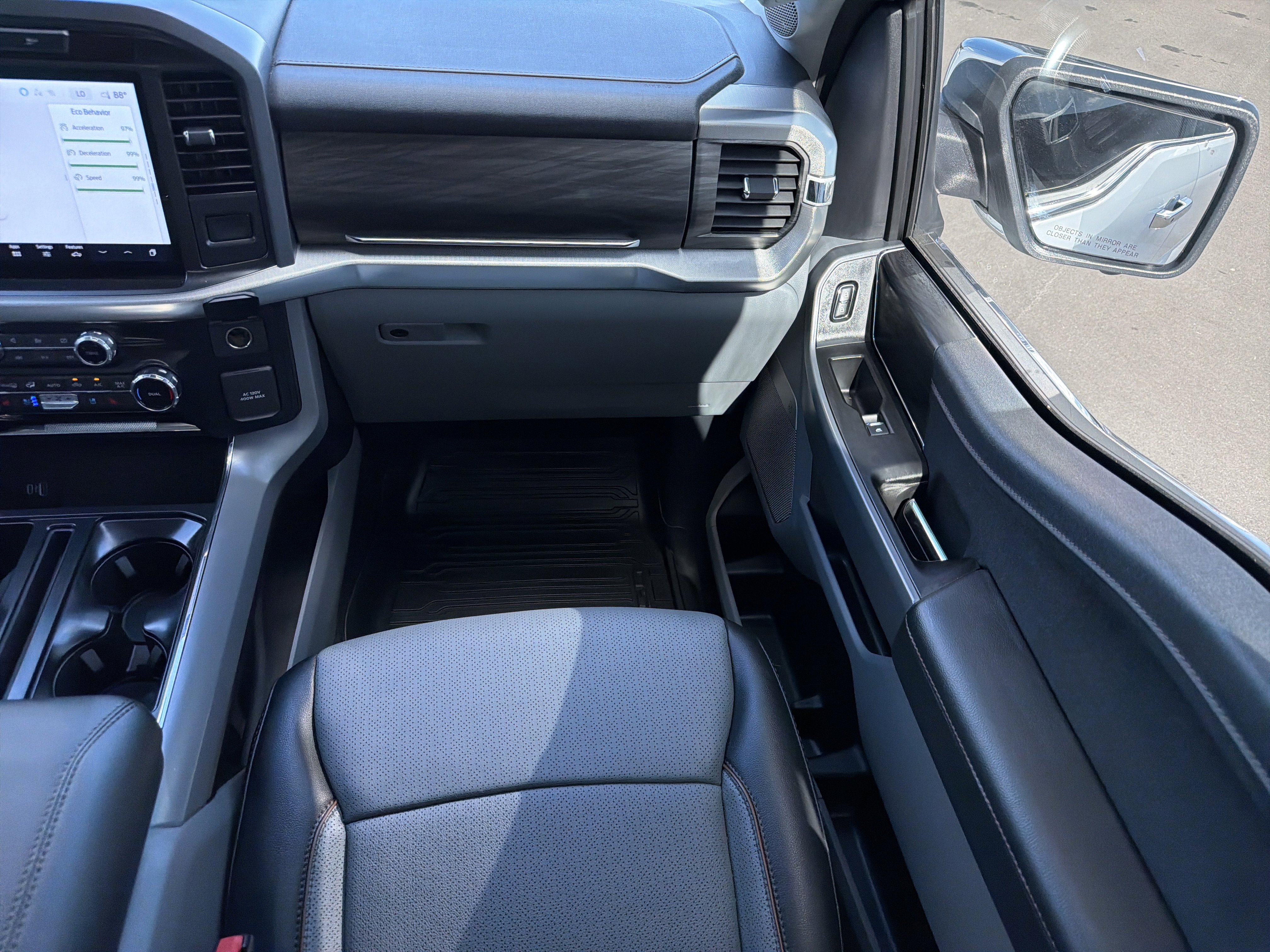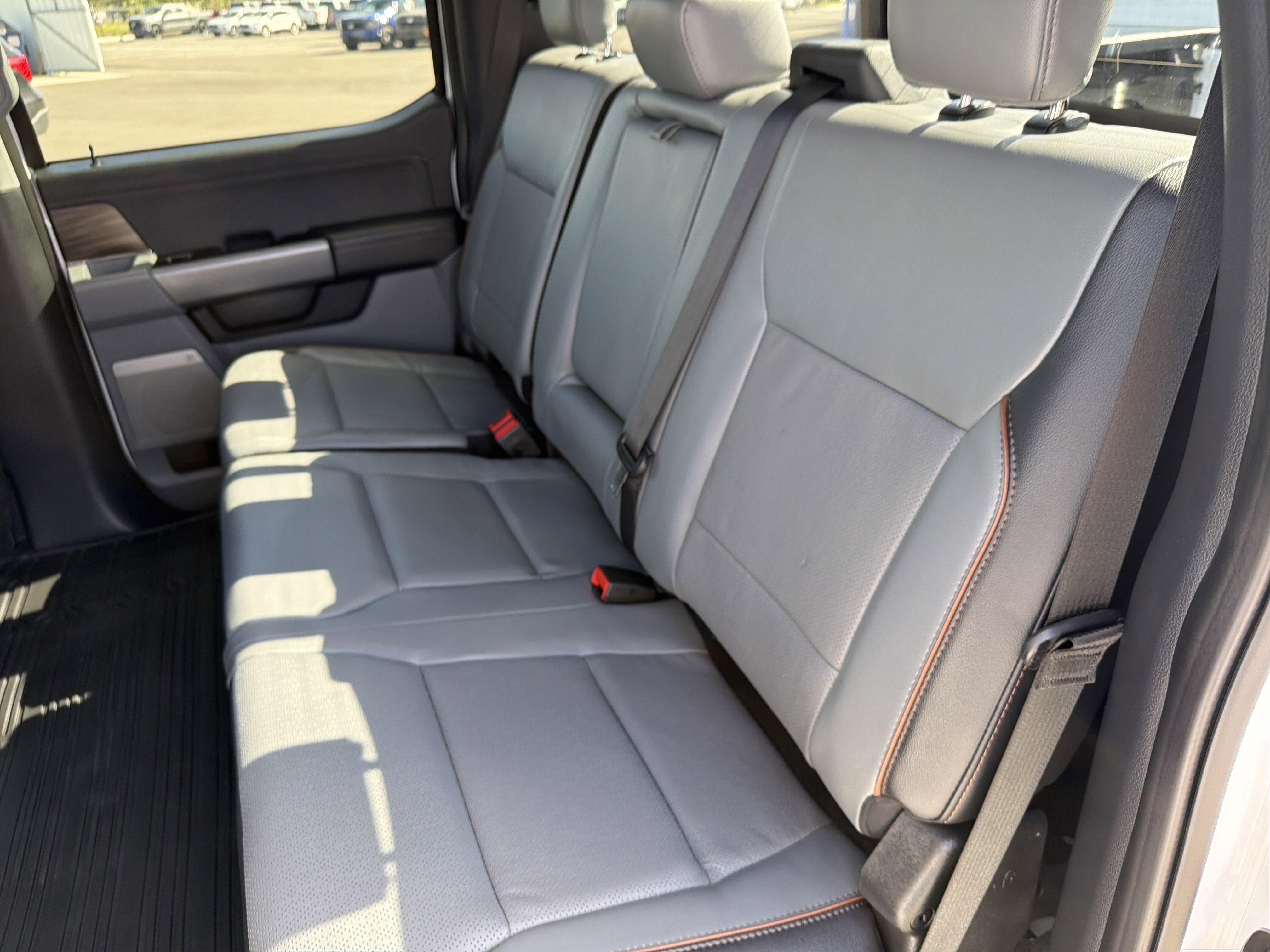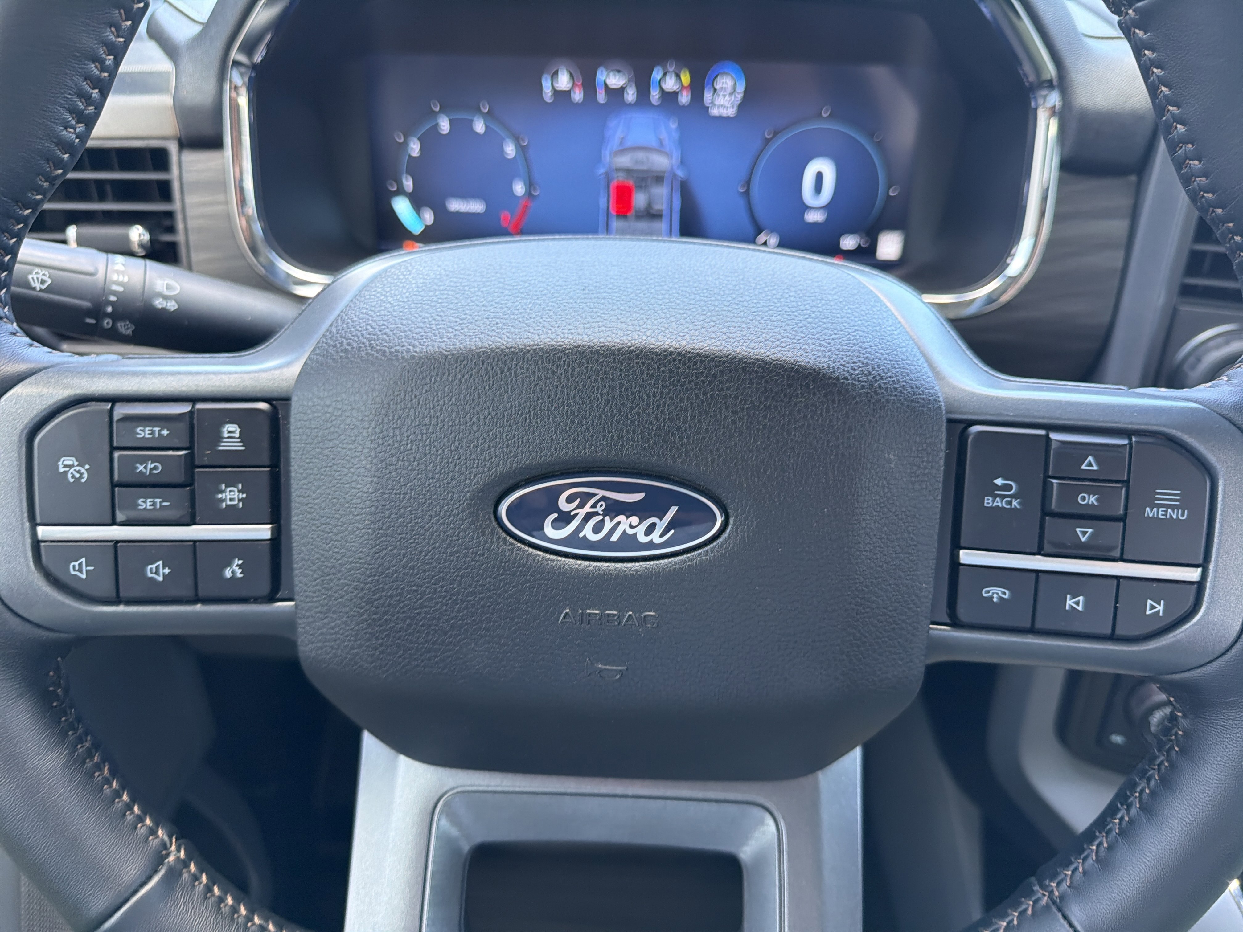 Certified. Oxford White 2024 Ford F-150 Lariat 4WD 10-Speed Automatic 3.5L V6 EcoBoost 4WD, 4 Pickup Box Tie-Down Plates, 4-Wheel Disc Brakes, 6 Extended Running Boards, 8 Speakers, ABS brakes, Adjustable pedals, Air Conditioning, AM/FM radio: SiriusXM with 360L, Auto High-beam Headlights, Auto-dimming door mirrors, Auto-dimming Rear-View mirror, Automatic temperature control, Bed Utility Package, Brake assist, Bumpers: chrome, Compass, Console Worksurface, Delay-off headlights, Driver door bin, Driver vanity mirror, Dual front impact airbags, Dual front side impact airbags, Electronic Stability Control, Emergency communication system: SYNC 4 911 Assist, Equipment Group 501A Standard, Front anti-roll bar, Front Bucket Seats, Front Center Armrest, Front dual zone A/C, Front fog lights, Front reading lights, Front wheel independent suspension, Fully automatic headlights, Garage door transmitter, Heated door mirrors, Heated front seats, Heated steering wheel, Illuminated entry, Integrated Trailer Brake Controller, Leather-Trimmed Bucket Seats, LED Box Lighting, Low tire pressure warning, Memory seat, Mobile Office Package, Navigation system: Connected Navigation, Occupant sensing airbag, Outside temperature display, Overhead airbag, Overhead console, Panic alarm, Partitioned Lockable Rear Storage, Passenger vanity mirror, Pedal memory, Power door mirrors, Power driver seat, Power passenger seat, Power steering, Power Tailgate, Power windows, Pro Access Tailgate, Radio data system, Radio: B&O Sound System by Bang & Olufsen, Rain sensing wipers, Rear reading lights, Rear seat center armrest, Rear step bumper, Rear window defroster, Remote keyless entry, Security system, Speed control, Split folding rear seat, Steering wheel mounted audio controls, SYNC 4 w/Enhanced Voice Recognition, Tachometer, Telescoping steering wheel, Tilt steering wheel, Tough Bed Spray-In Bedliner, Tow/Haul Package, Traction control, Trip computer, Turn signal indicator mirrors, Variably intermittent wipers, Ventilated front seats, Voltmeter, Wheels: 20 Chrome-Like PVD, Wireless Charging.