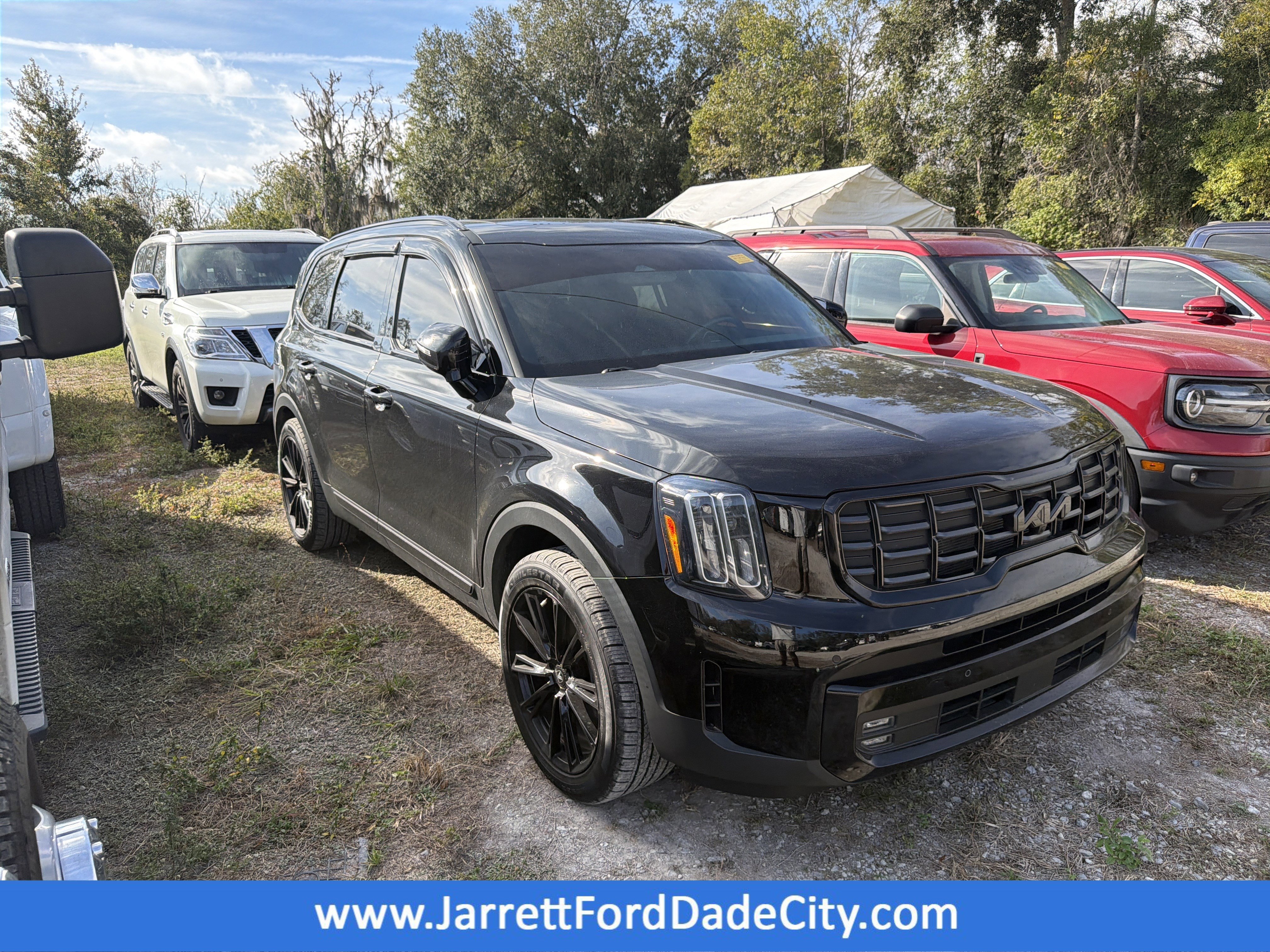 Ebony Black 2024 Kia Telluride SX FWD 8-Speed Automatic 3.8L V6 DOHC 10 Speakers, 3.510 Axle Ratio, 3rd row seats: split-bench, 4-Wheel Disc Brakes, ABS brakes, Air Conditioning, AM/FM radio: SiriusXM, Apple CarPlay & Android Auto, Auto High-beam Headlights, Auto-dimming Rear-View mirror, Automatic temperature control, Brake assist, Bumpers: body-color, Cargo Tray Seat Back, Carpet Floor Mats, Compass, Delay-off headlights, Driver door bin, Driver vanity mirror, Dual front impact airbags, Dual front side impact airbags, Electronic Stability Control, Emergency communication system: 911 Connect, Exterior Parking Camera Rear, Four wheel independent suspension, Front anti-roll bar, Front Bucket Seats, Front Center Armrest, Front dual zone A/C, Front fog lights, Front reading lights, Fully automatic headlights, Garage door transmitter: HomeLink, harman/kardon® Speakers, Heated & Ventilated Front Bucket Seats, Heated door mirrors, Heated front seats, Illuminated entry, Knee airbag, Leather Seat Trim, Leather Shift Knob, Leather steering wheel, Low tire pressure warning, Mahogany Interior Color Package, Memory seat, Navigation System, Occupant sensing airbag, Outside temperature display, Overhead airbag, Overhead console, Panic alarm, Passenger door bin, Passenger vanity mirror, Power door mirrors, Power driver seat, Power Liftgate, Power moonroof, Power passenger seat, Power steering, Power windows, Radio data system, Radio: AM/FM Harman Kardon Premium Audio System, Rear air conditioning, Rear anti-roll bar, Rear audio controls, Rear Bumper Applique, Rear reading lights, Rear side impact airbag, Rear window defroster, Rear window wiper, Reclining 3rd row seat, Remote keyless entry, Roof rack: rails only, Security system, Self Leveling Rear Suspension, Smart Key w/ Push Button and Remote Start, Speed control, Speed-sensing steering, Split folding rear seat, Spoiler, Steering wheel mounted audio controls, Tachometer, Telescoping steering wheel, Tilt steering wheel, Towing Hitch Standard, Towing Package, Traction control, Trip computer, Turn signal indicator mirrors, Variably intermittent wipers, Ventilated front seats, Wheels: 20 x 7.5 Black Finish.