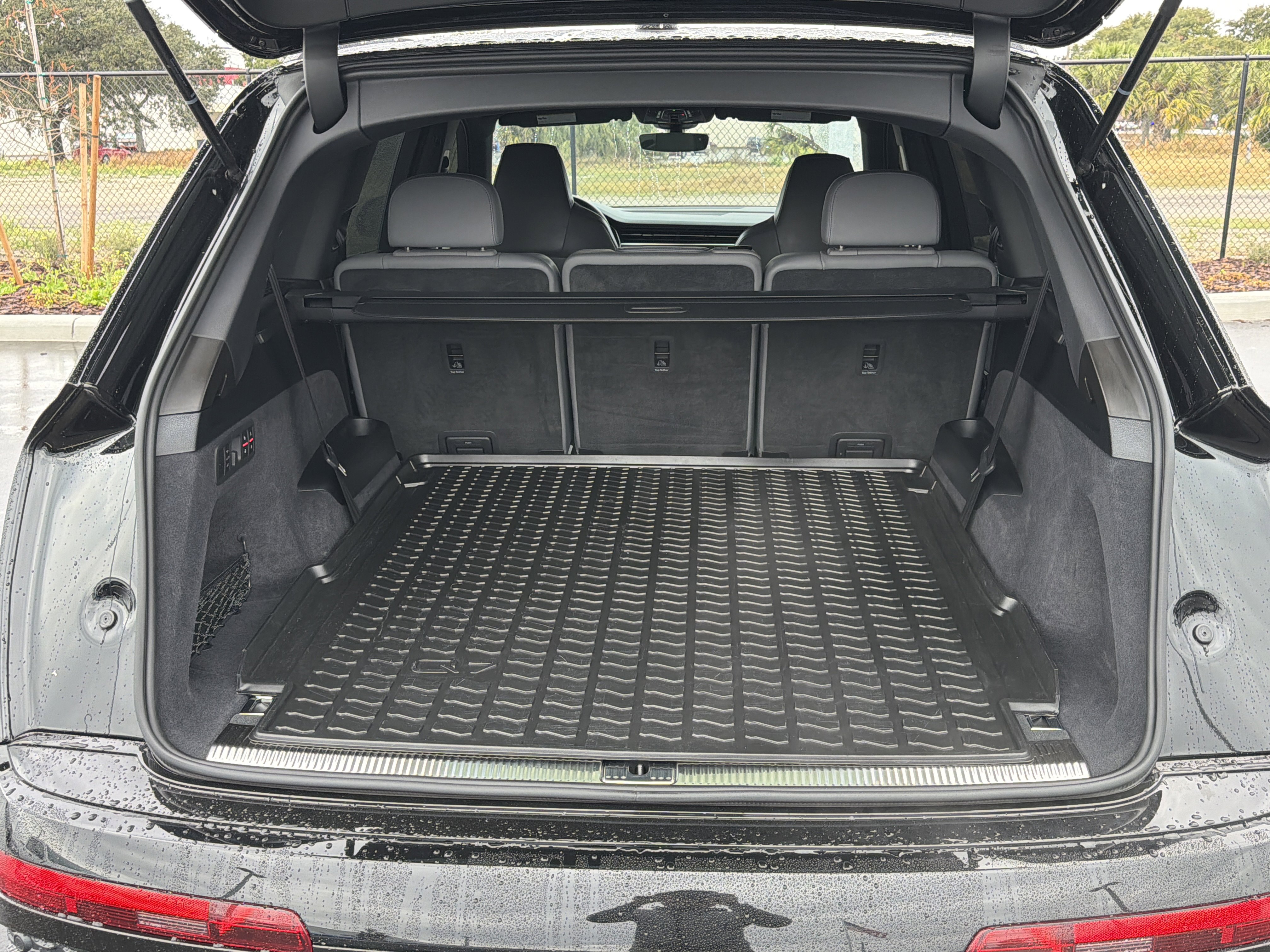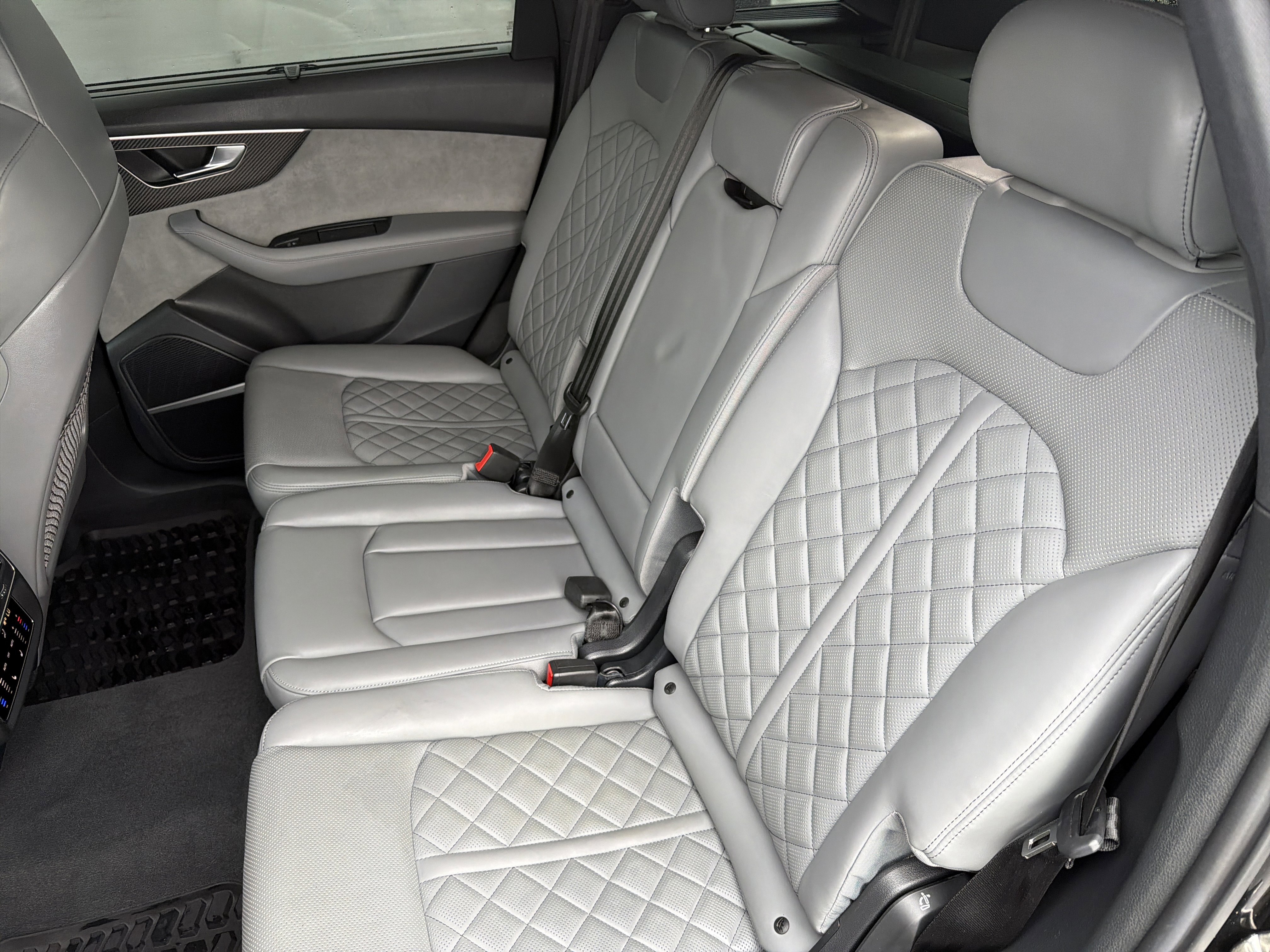 Black Metallic 2025 Audi SQ7 Premium Plus quattro quattro 8-Speed Automatic with Tiptronic 4.0L V8 Turbocharged DOHC 32V LEV3-ULEV125 500hp ALLOY WHEELS, BACK UP CAMERA, BEST PRICE, BEST SELECTION!, BLUETOOTH, 19 Speakers, 3rd row seats: bench, 4-Wheel Disc Brakes, ABS brakes, Adaptive suspension, Air Conditioning, All-Weather Floor Mats, AM/FM Radio, AM/FM radio: SiriusXM w/360L, Anthracite Gray Audi Rings, Audi First Aid Kit, Auto High-beam Headlights, Auto-dimming door mirrors, Auto-dimming Rear-View mirror, Auto-leveling suspension, Automatic temperature control, Bang & Olufsen Premium Sound System, Black Exterior Trim, Black Optic Package, Brake assist, Bumpers: body-color, Carbon Fiber Mirror Caps (DISC), Cargo Mat, Compass, Delay-off headlights, Diamond Stitched Valcona Leather Seat Trim, Driver door bin, Driver vanity mirror, Dual front impact airbags, Dual front side impact airbags, Dual-Pane Acoustic Glass for Side Windows, Electronic Stability Control, Emergency communication system: Audi connect CARE, Executive Package, Exterior Parking Camera Rear, Four wheel independent suspension, Front & Rear Door Audi S Beam, Front anti-roll bar, Front Bucket Seats, Front Center Armrest, Front dual zone A/C, Front fog lights, Front reading lights, Fully automatic headlights, Garage door transmitter: HomeLink, Heated door mirrors, Heated front seats, Heated Front Sport Seats Plus, Heated Rear Seats, Heated steering wheel, Illuminated entry, Leather Shift Knob, Leather steering wheel, Low tire pressure warning, Memory seat, Navigation system: Audi MMI Navigation plus with Touch Response, Occupant sensing airbag, Outside temperature display, Overhead airbag, Overhead console, Panic alarm, Passenger door bin, Passenger vanity mirror, Power door mirrors, Power driver seat, Power Liftgate, Power moonroof: Panoramic, Power passenger seat, Power steering, Power windows, Privacy Trunk Cover, Radio data system, Rain sensing wipers, Rear air conditioning, Rear anti-roll bar, Rear Door/Side Windows & Tailgate Sunshades, Rear dual zone A/C, Rear fog lights, Rear reading lights, Rear seat center armrest, Rear side impact airbag, Rear window defroster, Rear window wiper, Reclining 3rd row seat, Remote keyless entry, Security system, Speed control, Speed-sensing steering, Split folding rear seat, Spoiler, Sports Exhaust Resonator Kit, Steering wheel memory, Steering wheel mounted audio controls, Tachometer, Telescoping steering wheel, Tilt steering wheel, Traction control, Traffic Sign Recognition, Trailer Hitch, Trip computer, Turn signal indicator mirrors, Variably intermittent wipers, Ventilated Front Seats, Wheels: 21 5-Double-Spoke-Design Bi-Color Finish, Wheels: 21 6-Y-Spoke Design Black Finish, Wireless Phone Charging Pad Delete.