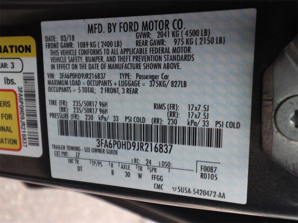 Magnetic 2018 Ford Fusion SE FWD 6-Speed Automatic 1.5L EcoBoost
