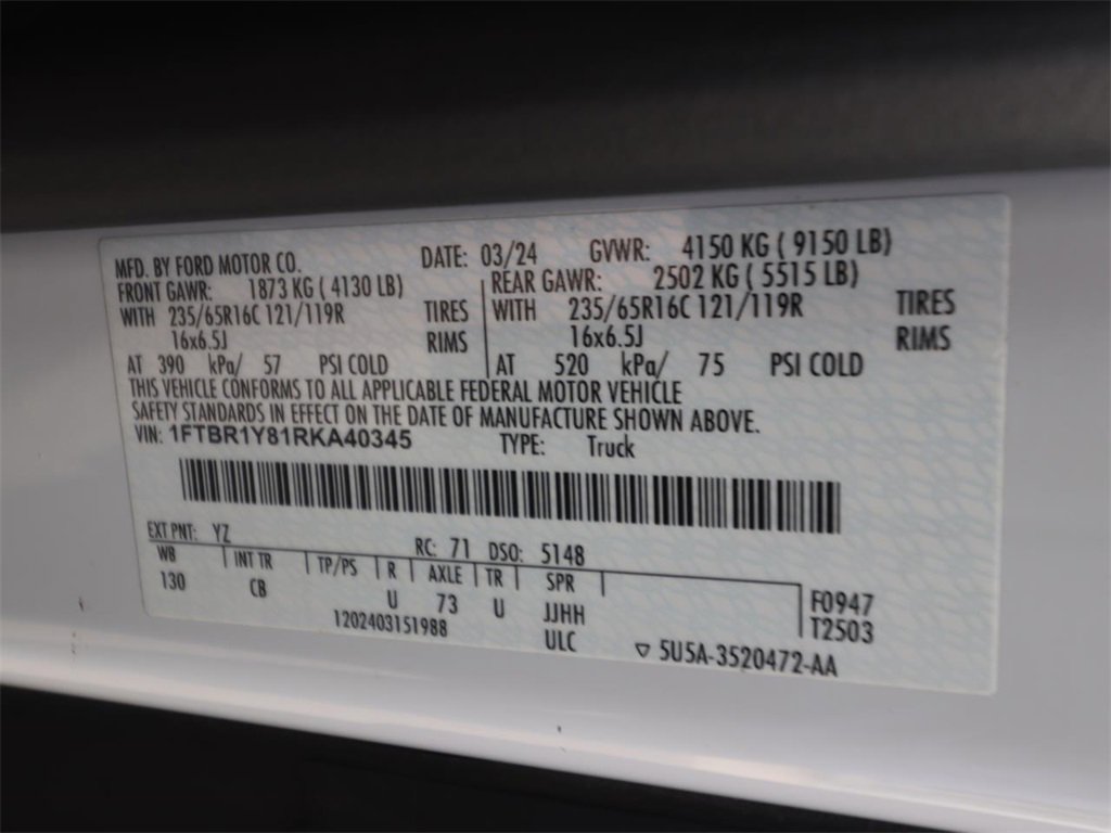 Oxford White 2024 Ford Transit-250 Base RWD 10-Speed Automatic with Overdrive 3.5L V6 Flex Fuel